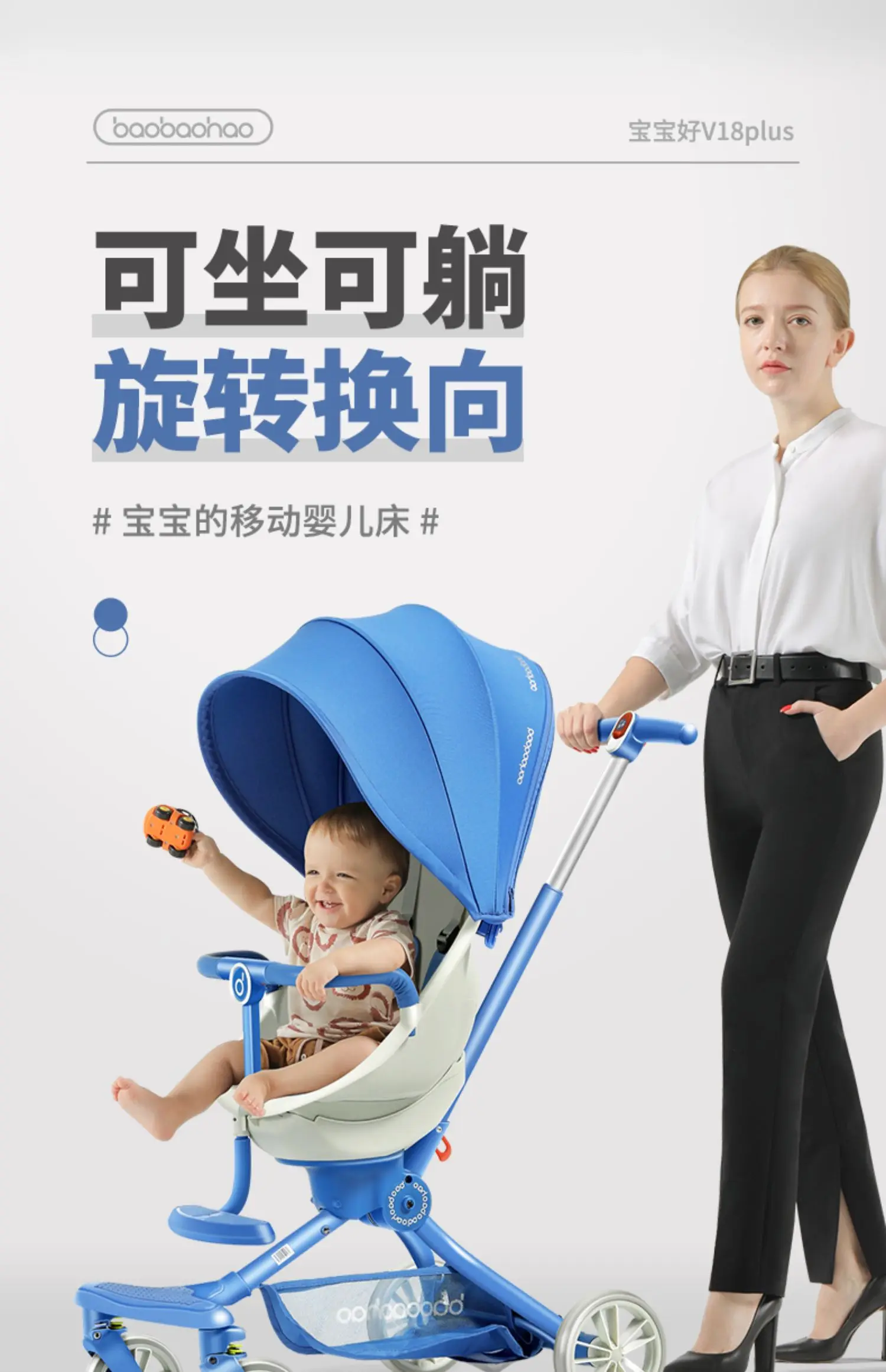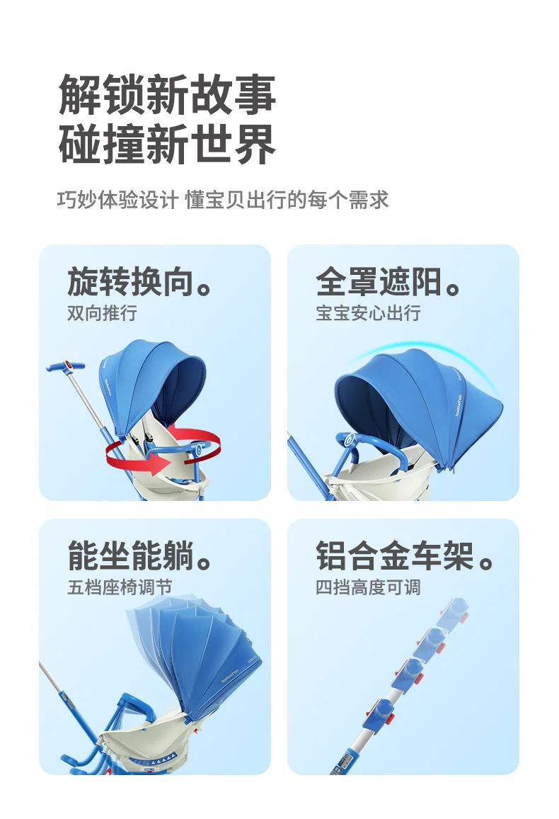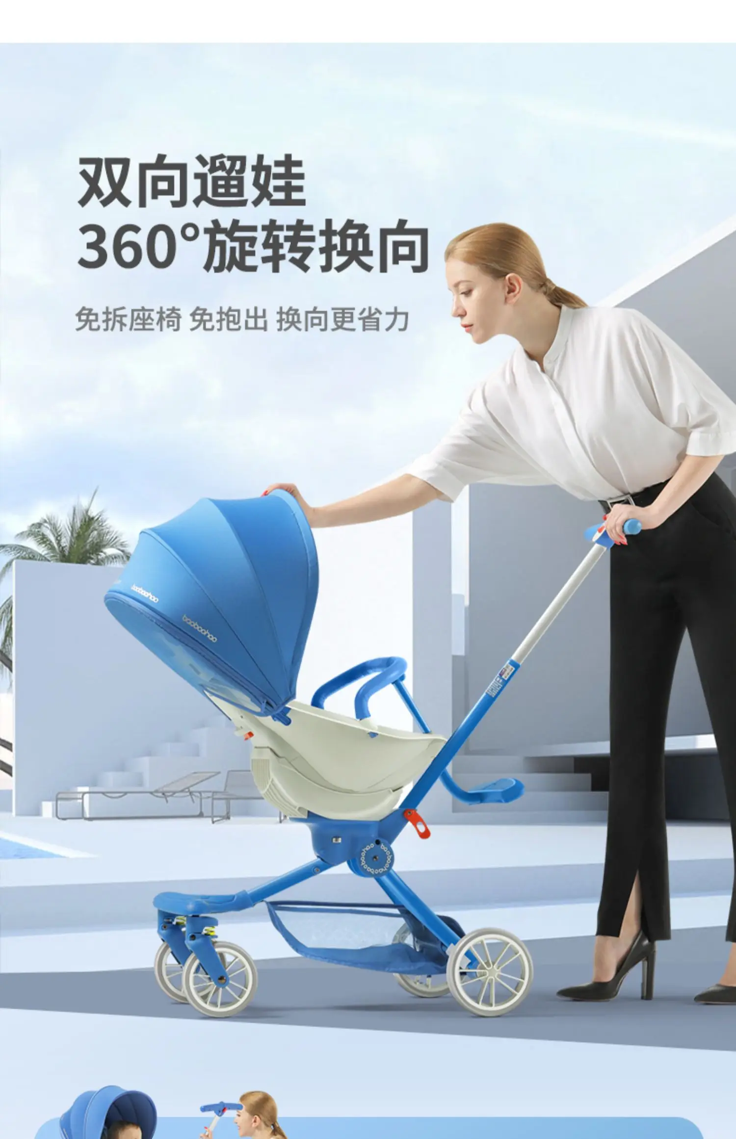 360 ° Asiento giratorio para cochecito de bebé, marco de aluminio de 5 posiciones con dosel de cobertura completa, almohadilla de asiento lavable extraíble, absorción de impacto