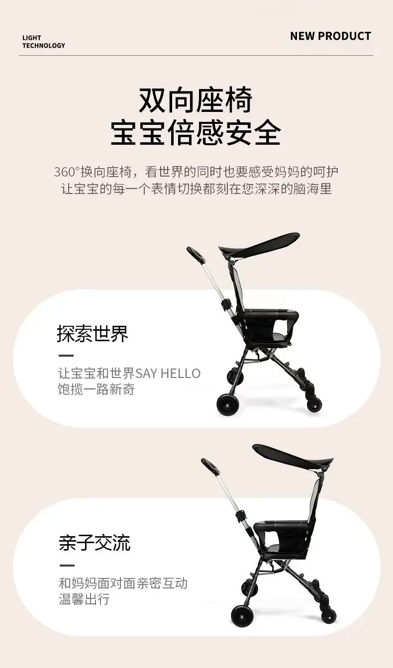 Comprar 360 ° Cochecito Reversible, cochecito de bebé plegable y ligero con absorción de impacto de 4 ruedas, cochecito de viaje aprobado por avión