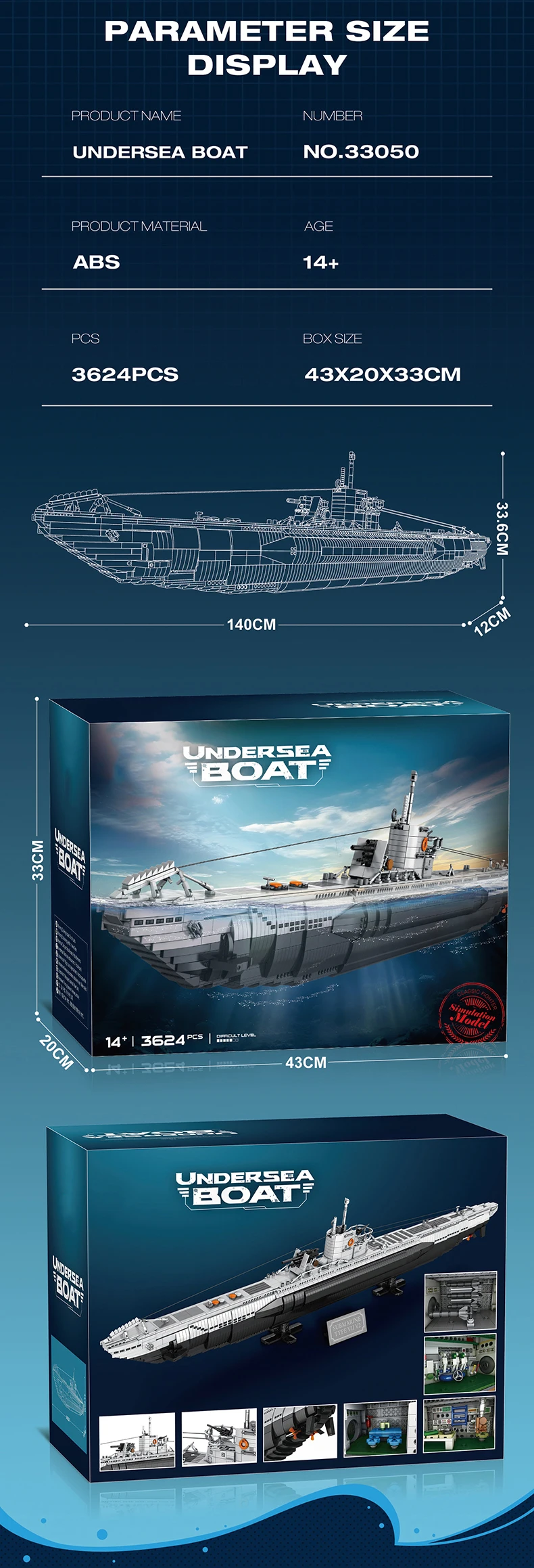 ✨Tamaño impresionante: una vez ensamblado, el modelo submarino mide una extraordinaria longitud de 1,4 m, lo que lo convierte en una pieza central cautivadora para cualquier exhibición o colección.