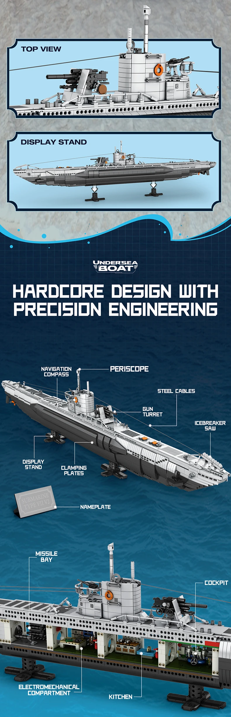 ✨Incluye soporte de base de exhibición: para exhibir con orgullo su modelo de submarino completo, se incluye un soporte de base de exhibición.Esto le permite exhibir con confianza su creación como un cautivador adorno de escritorio o un regalo preciado para cumpleaños, Navidad u otras ocasiones especiales.