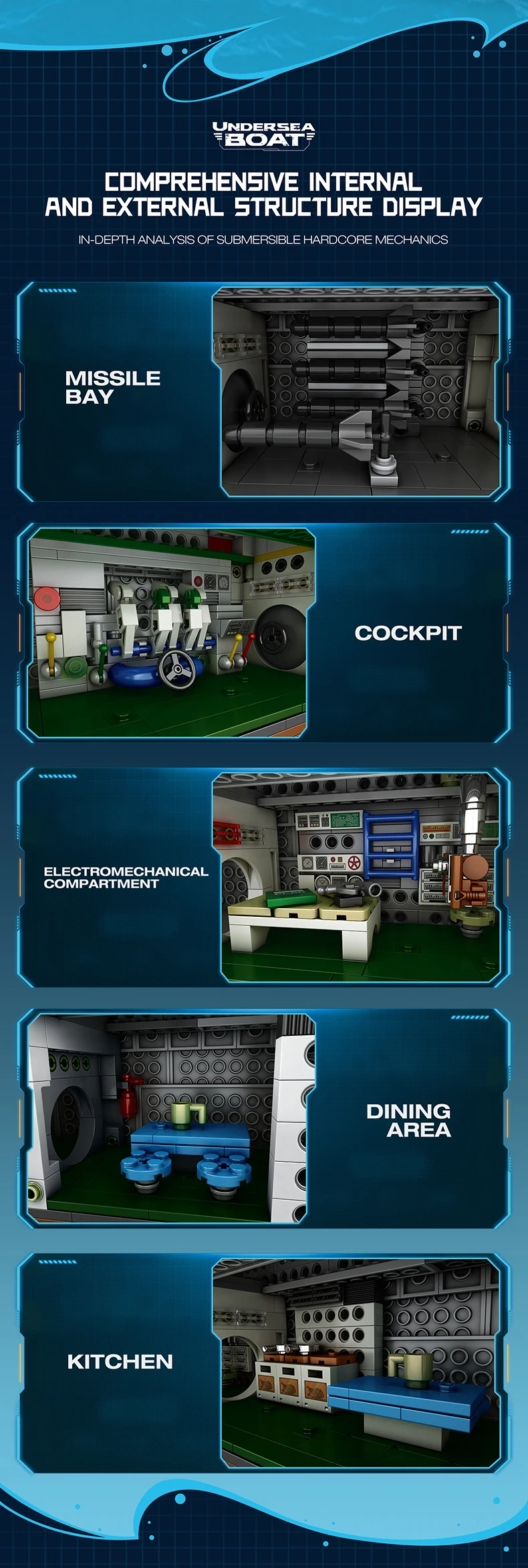 ✨Recreación Interior detallada: Sumérgete en el mundo de los submarinos con este set que recrea fielmente los detalles internos de un submarino real.Desde periscopios hasta cremalleras y paneles de control, se incluyen todos los aspectos del interior del submarino para una experiencia de construcción inmersiva.