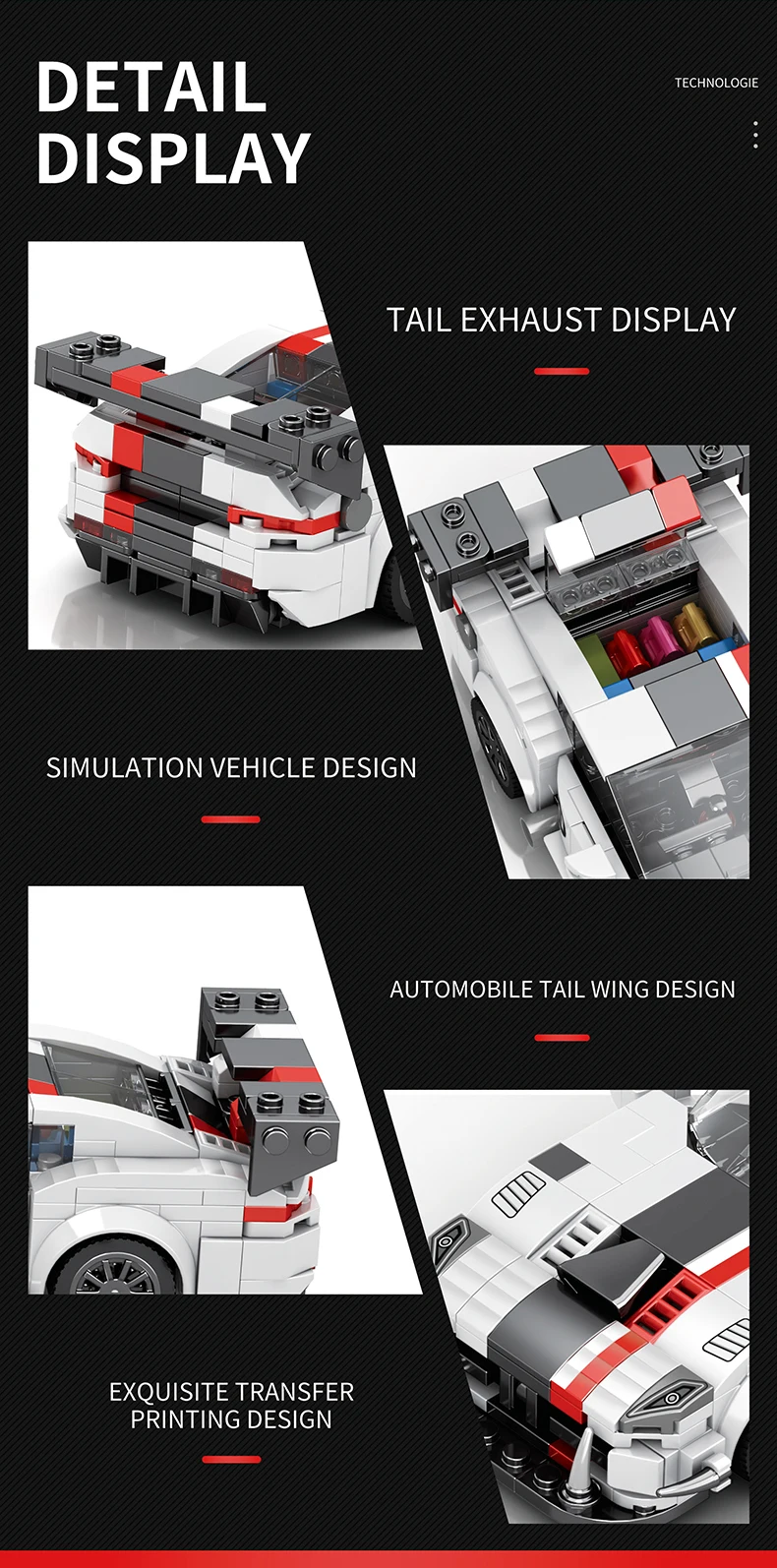 1. Modelo de auto deportivo de carreras urbanas auténticas: presentamos nuestro juego de bloques de construcción de modelo de coche de carreras urbanas de 379 piezas, un regalo perfecto para los niños durante la temporada navideña.Este set presenta un vehículo de velocidad clásico a escala 1:24, diseñado para capturar la esencia de las carreras de alto rendimiento.