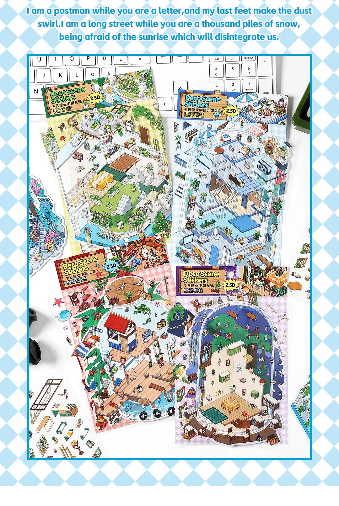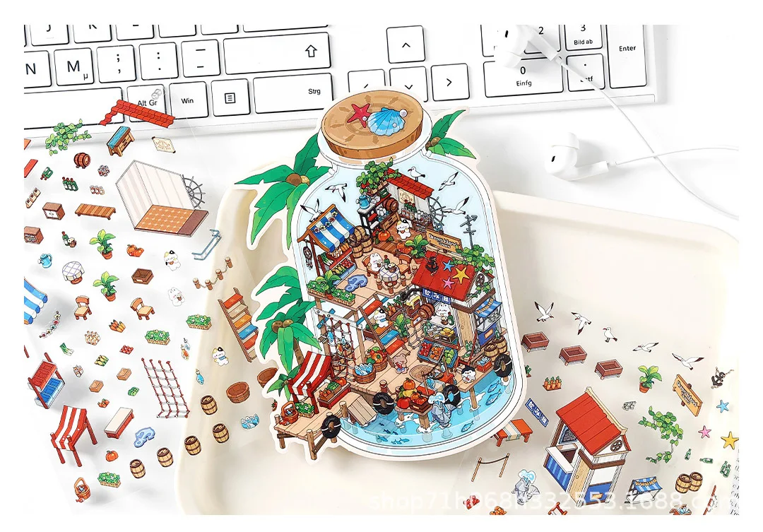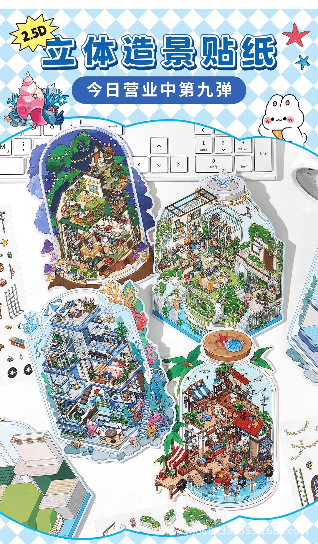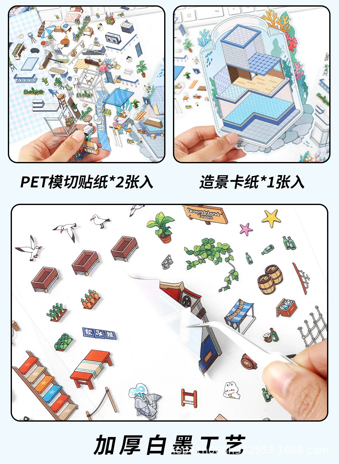 Comprar 3D lindo Animal cielo océano tienda escena en miniatura pegatina DIY paisaje pegatina bolsillo cabina escena apilamiento regalo para