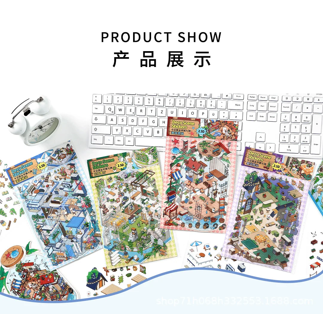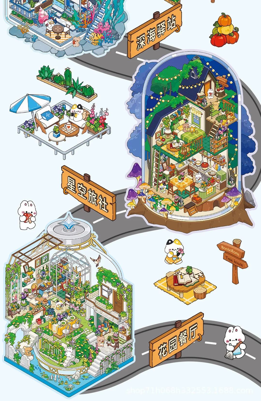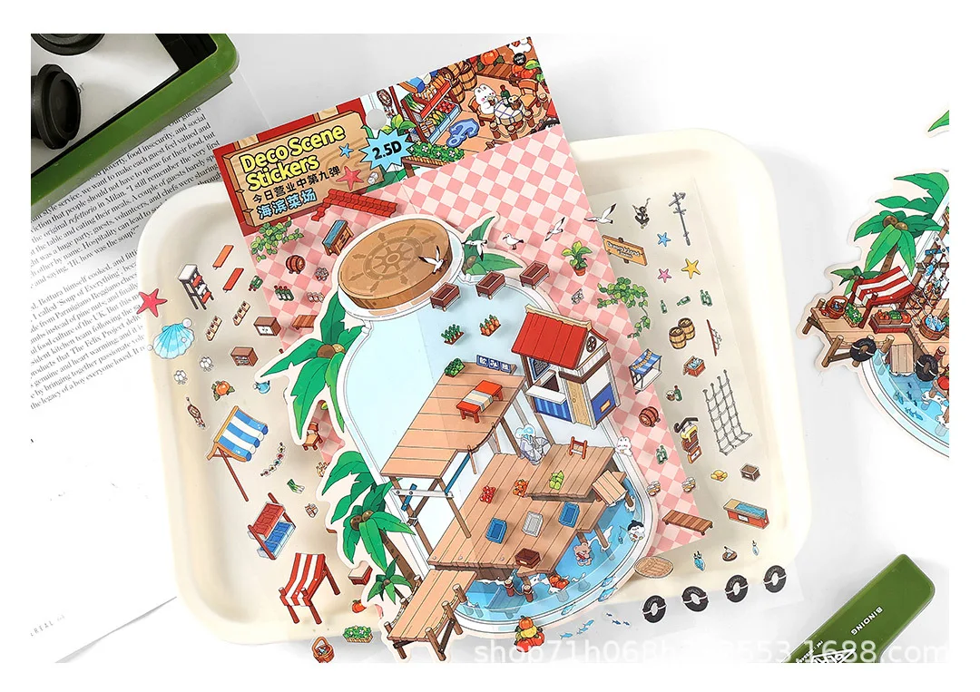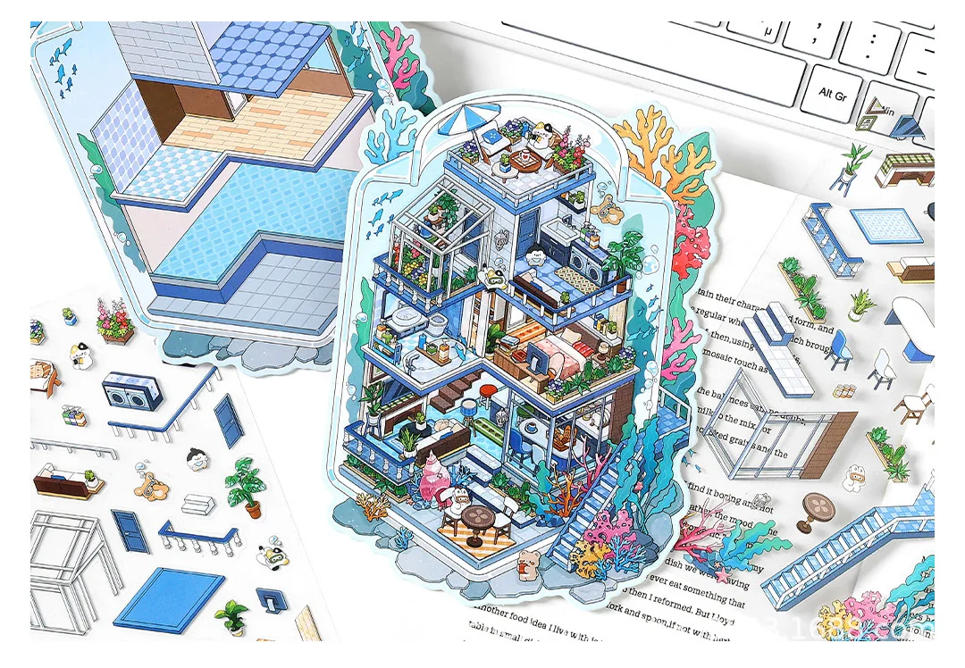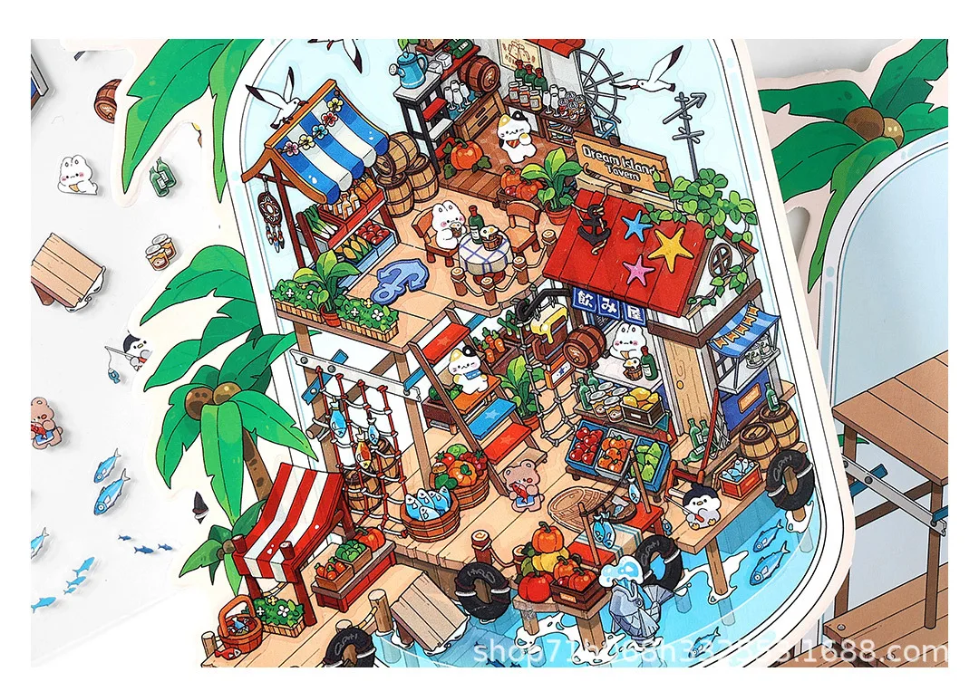 Comprar 3D lindo Animal cielo océano tienda escena en miniatura pegatina DIY paisaje pegatina bolsillo cabina escena apilamiento regalo para