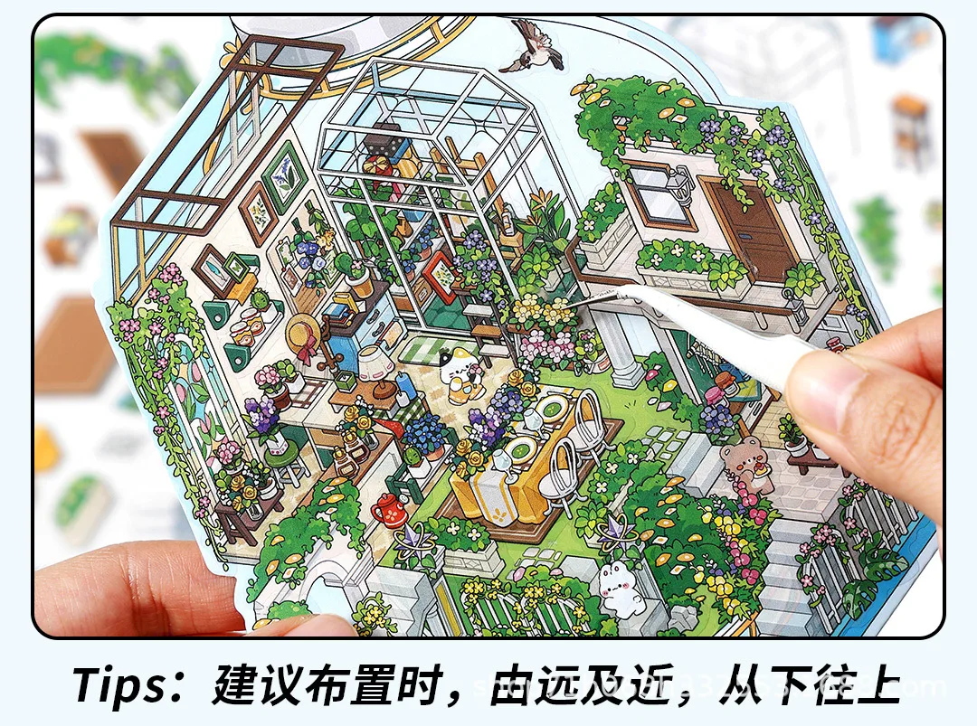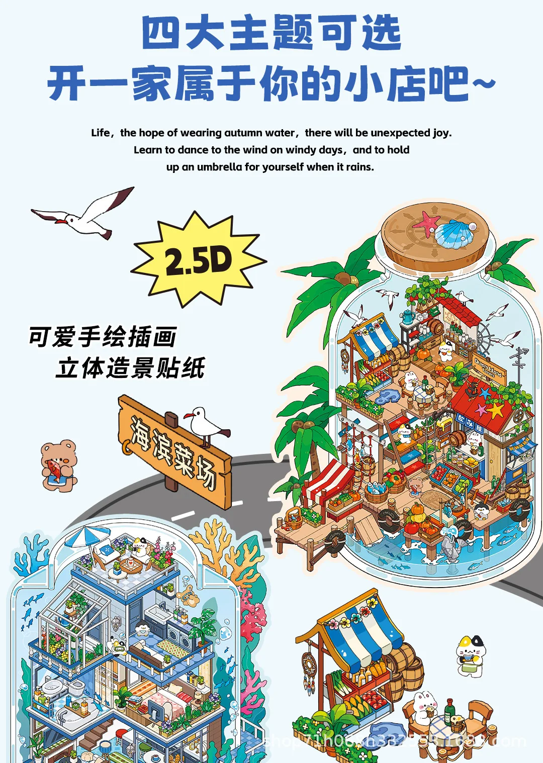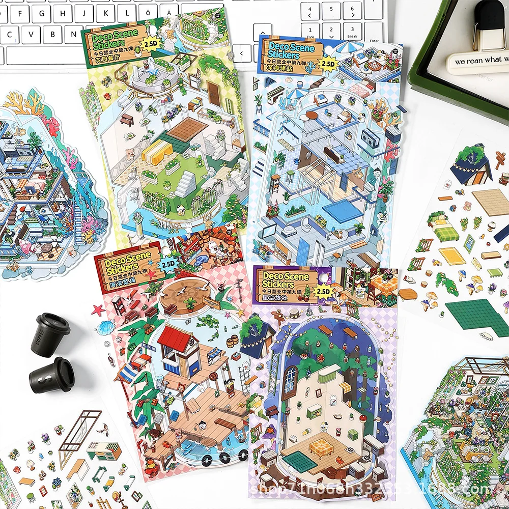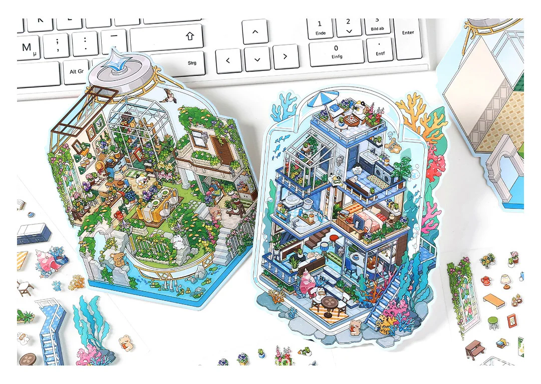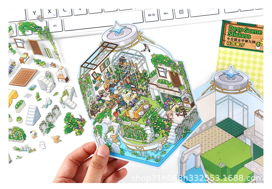 Comprar 3D lindo Animal cielo océano tienda escena en miniatura pegatina DIY paisaje pegatina bolsillo cabina escena apilamiento regalo para
