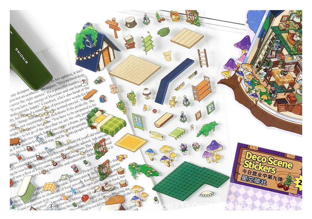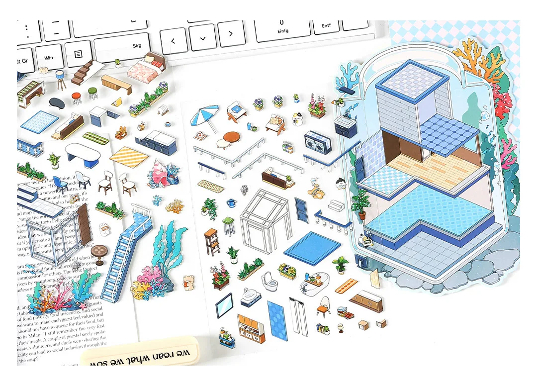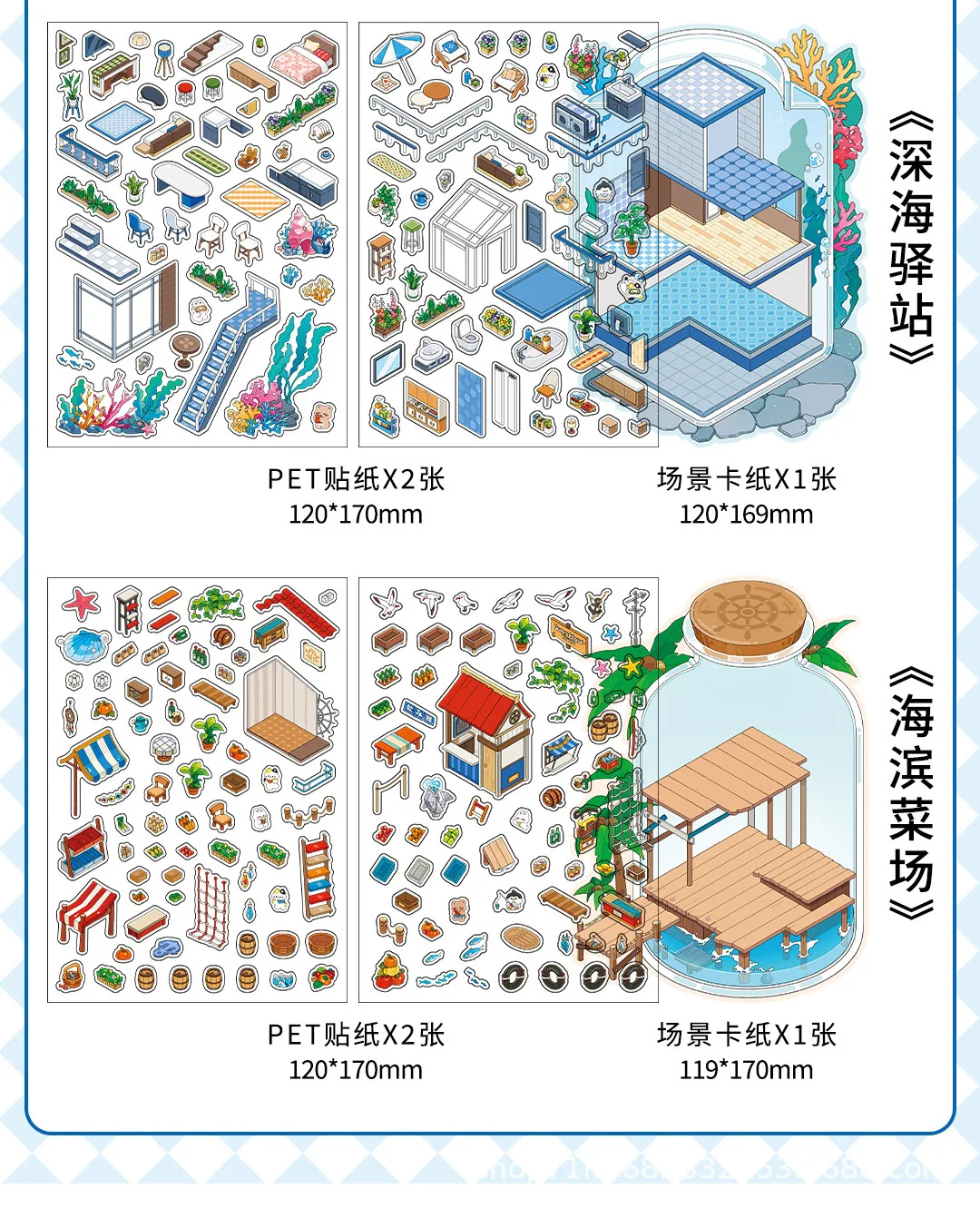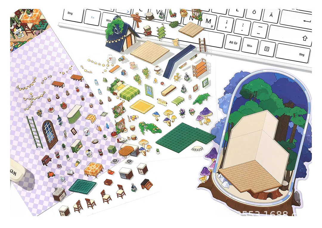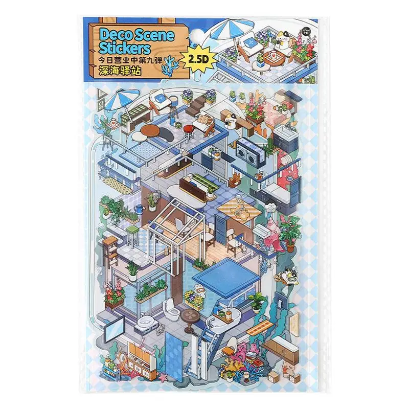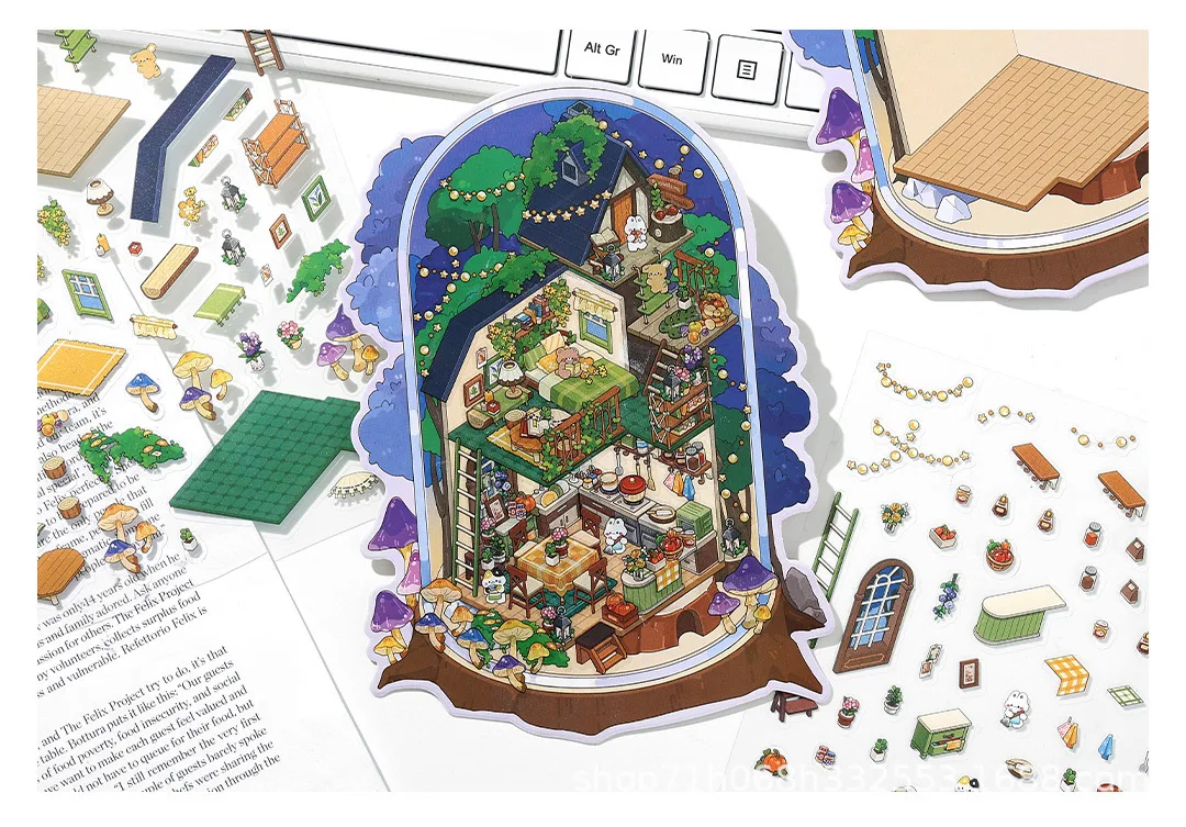 Comprar 3D lindo Animal cielo océano tienda escena en miniatura pegatina DIY paisaje pegatina bolsillo cabina escena apilamiento regalo para