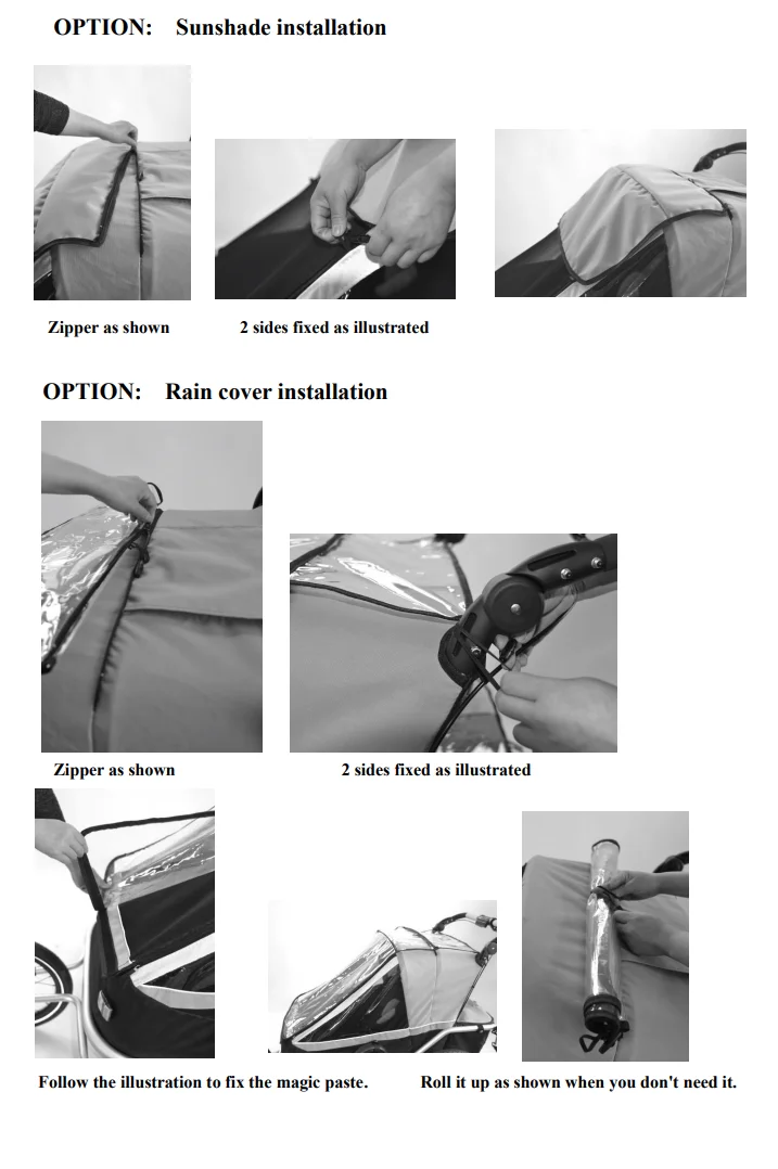 Construido con un duraderomarco de aluminioy resistente al aguaTejido resistente al PU 600D, este remolque garantiza seguridad y comodidad en todas las condiciones climáticas.El protector contra la intemperie completo y la red contra insectos incluidos brindan protección completa contra la lluvia, el viento y los insectos.