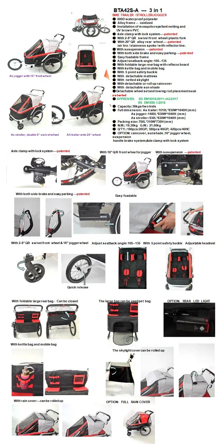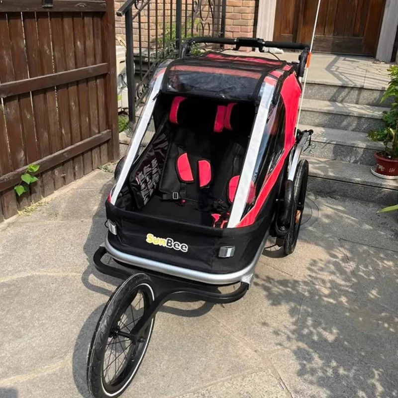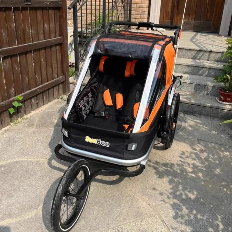 Comprar 自転車トレーラー 3in1トレーラー、ベビーカー、ジョガー。 2人乗りダブルベビーカー、ウェザーシールド、ハンドブレーキ、折りたたみ式デザイン付き