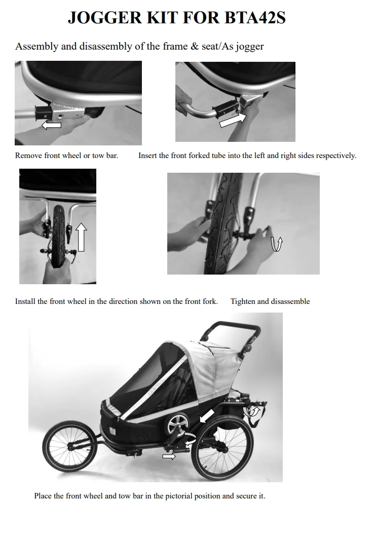 Modos: Remolque de bicicleta / Cochecito / Jogger