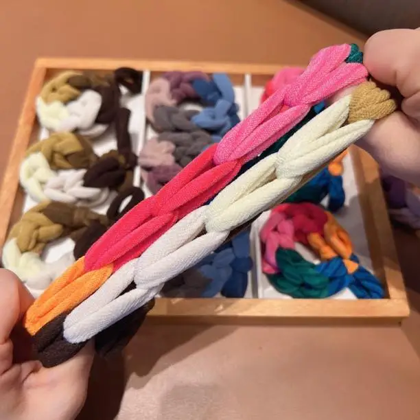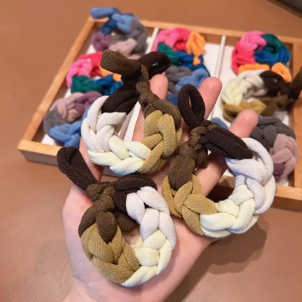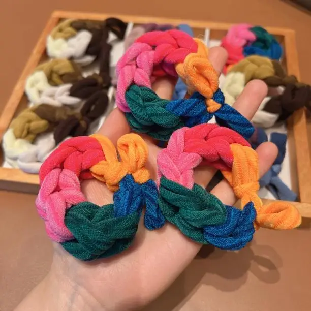 3PCS. Lazos para el cabello trenzados con bloques de color de dopamina: gruesos, de alta elasticidad, duraderos para colas de caballo, accesorios para el cabello para mujeres y niños