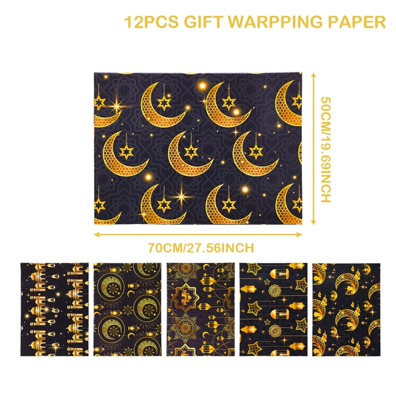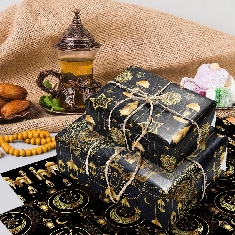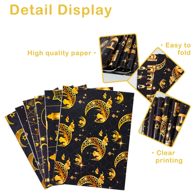 4/8/12 Uds Eid Mubarak papel para envolver regalos decoración de Ramadán 2025 papel de regalo Eid Ramadán Kareem fiesta musulmana islámica Eid Al Adha