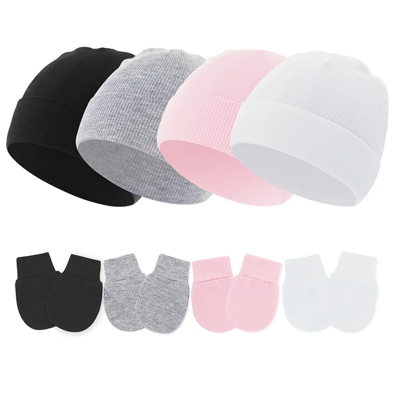 4 juegos por lote, gorro para bebé recién nacido, guantes, gorros tejidos de Color sólido para niños y niñas, gorro suave, accesorios para bebés de primavera, regalo de ducha infantil