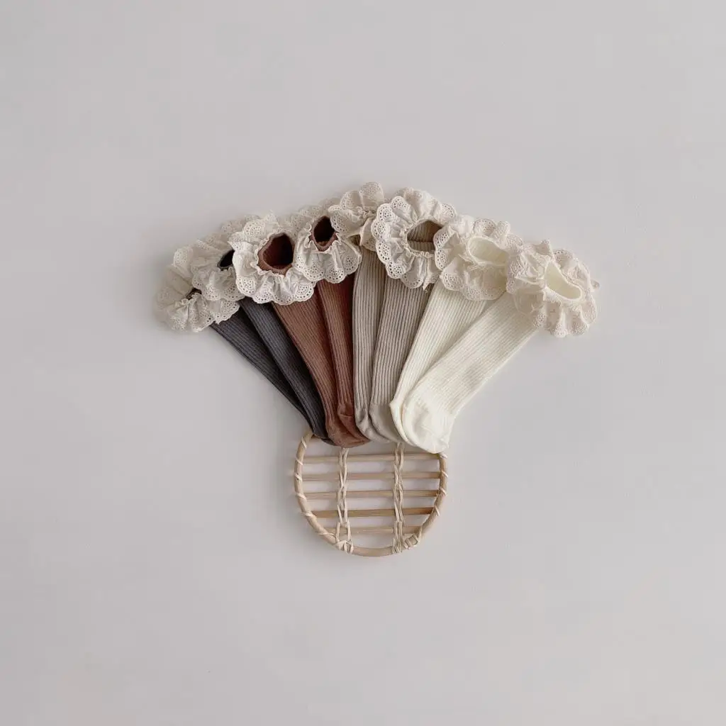 Comprar 4 par/lote de calcetines hasta la rodilla para niñas, calcetines de encaje de algodón suave para niños, calcetines largos de princesa para niños, calentadores de piernas con volantes para 0-10 años