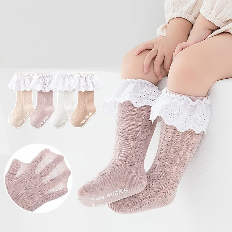 Comprar 4 par/set calcetines de bebé para niñas, calcetines de verano para niñas pequeñas, calcetines antideslizantes de encaje de algodón para recién nacidos, calcetines de princesa para niños de 0 a 5 años