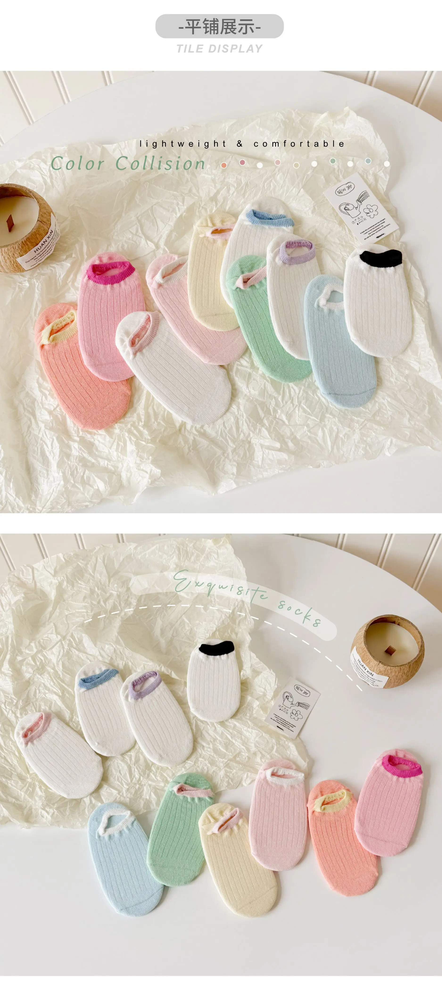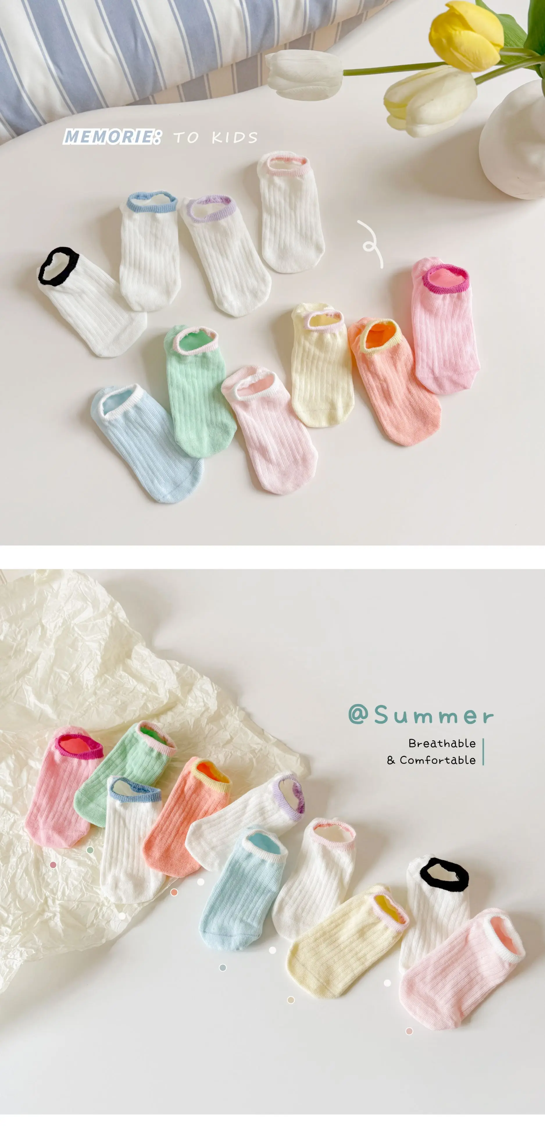 4 par/set de calcetines tobilleros cortos de Color gelatina de verano para niños pequeños, niños y niñas, calcetines finos transpirables de algodón suave, calcetines invisibles de malla