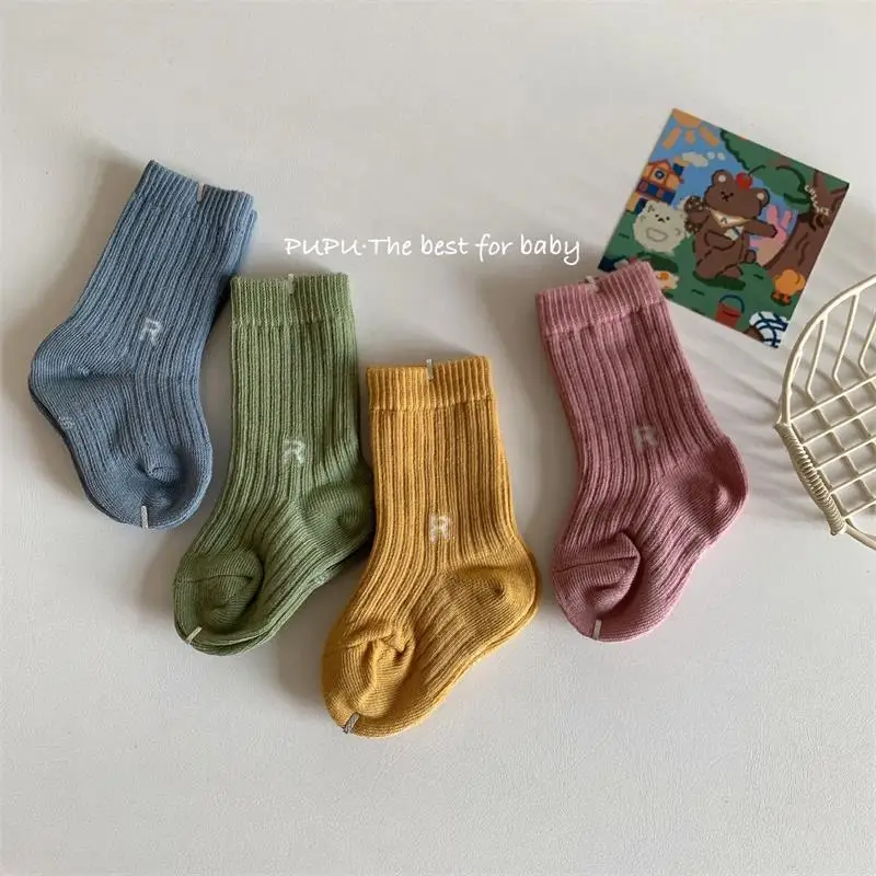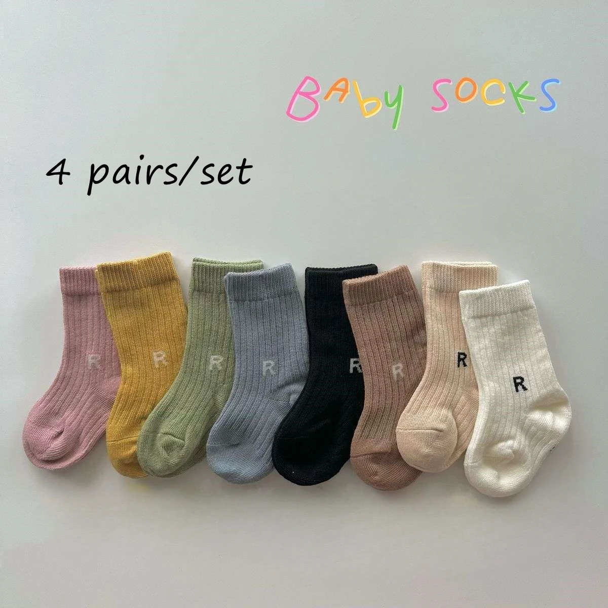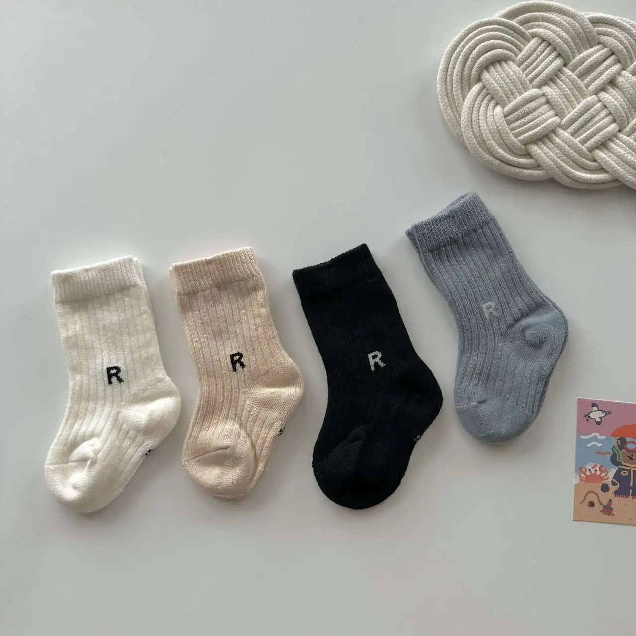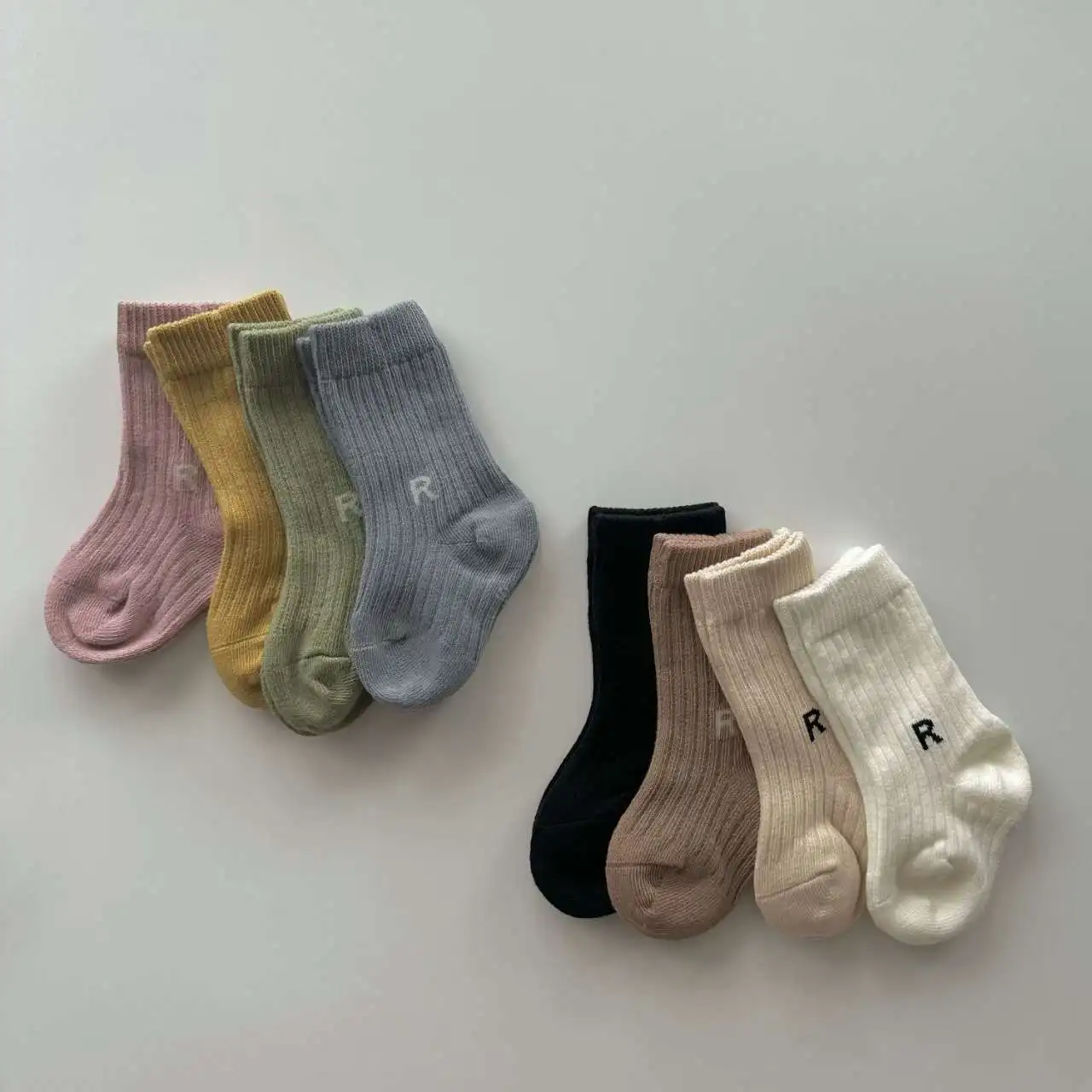 Comprar 4 par/set niños niño niña calcetín simplicidad moda letra R calcetín para niño pequeño algodón suave primavera otoño bebé calcetín Shcool Sport