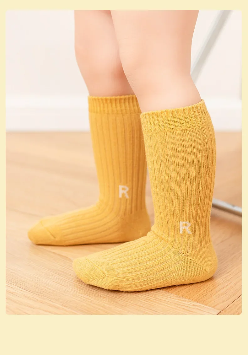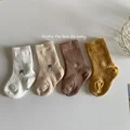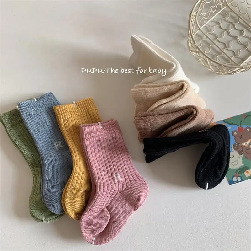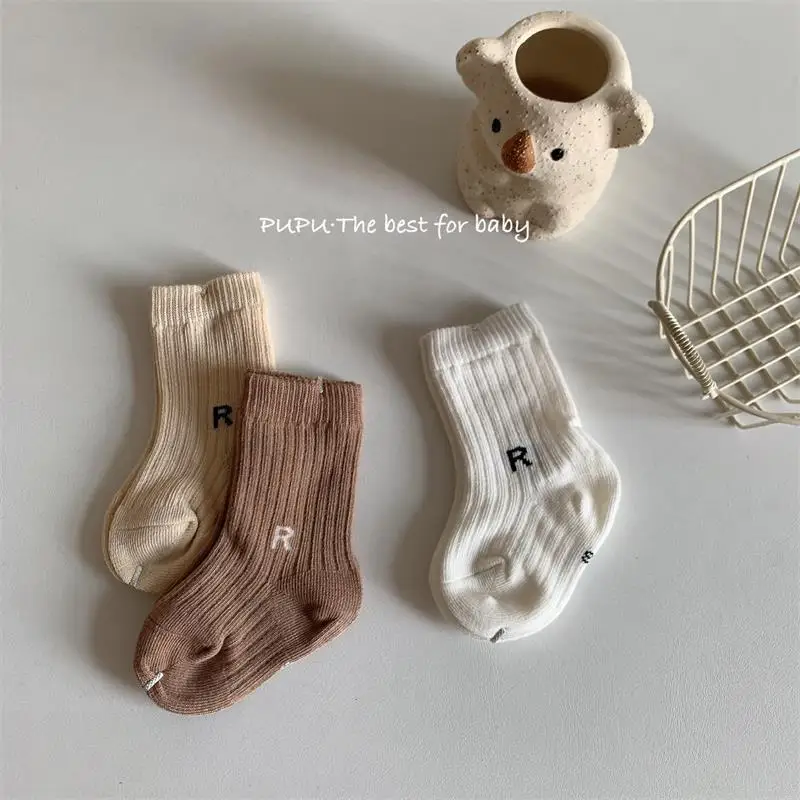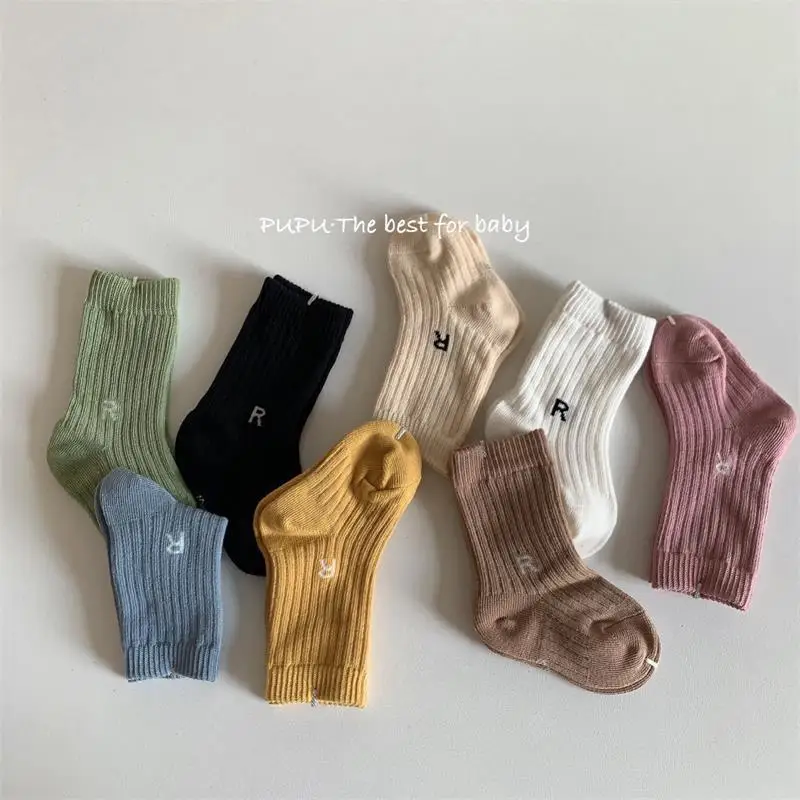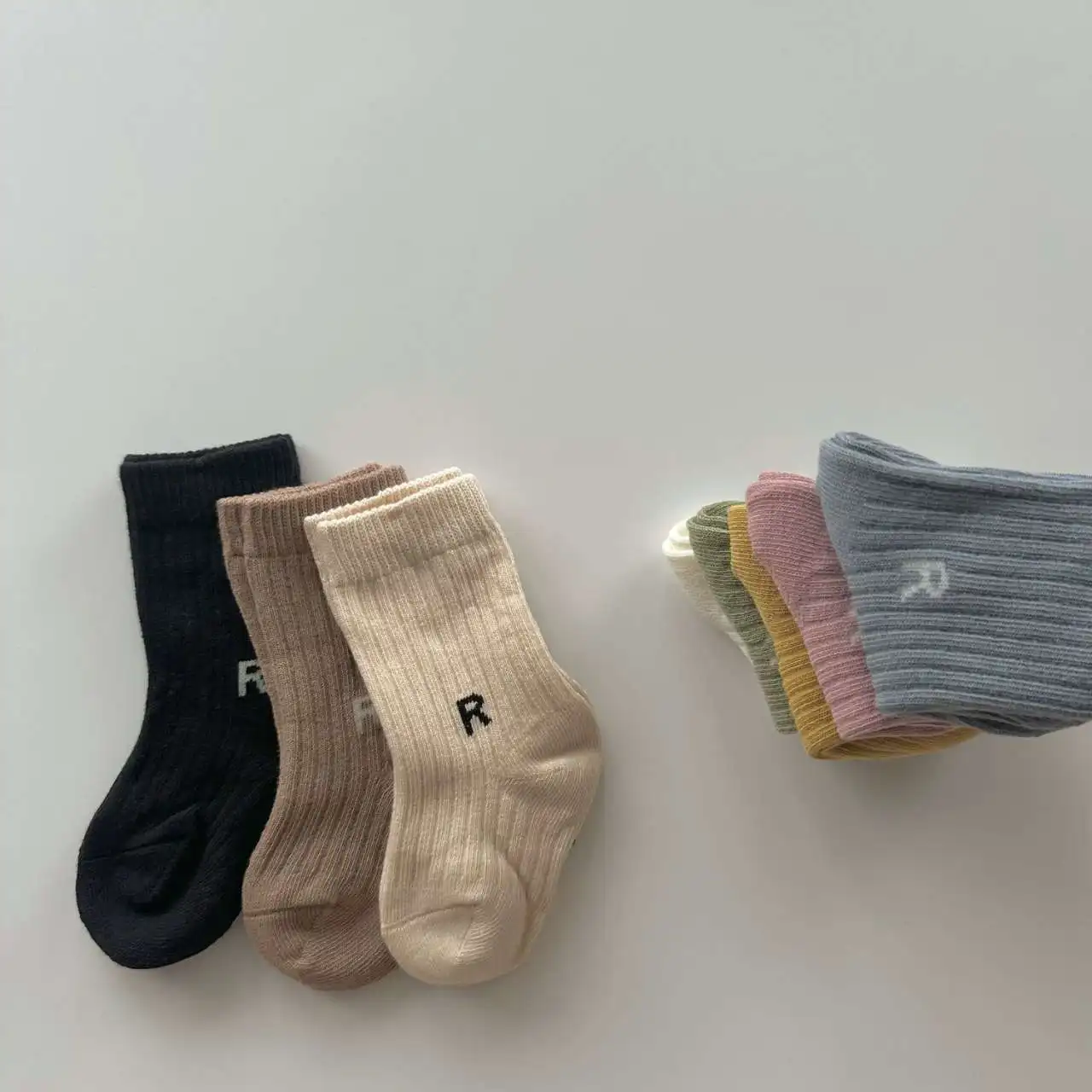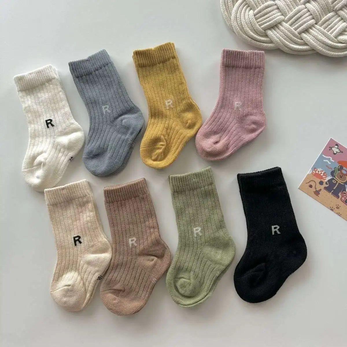 Comprar 4 par/set niños niño niña calcetín simplicidad moda letra R calcetín para niño pequeño algodón suave primavera otoño bebé calcetín Shcool Sport