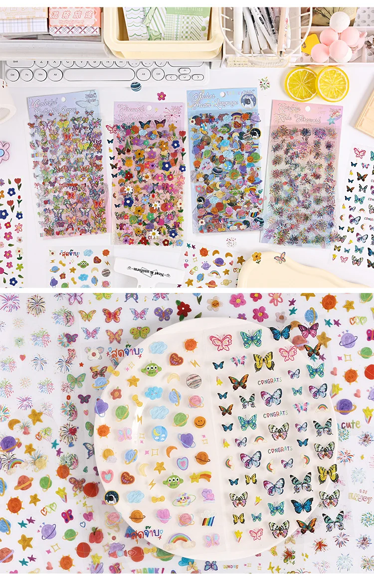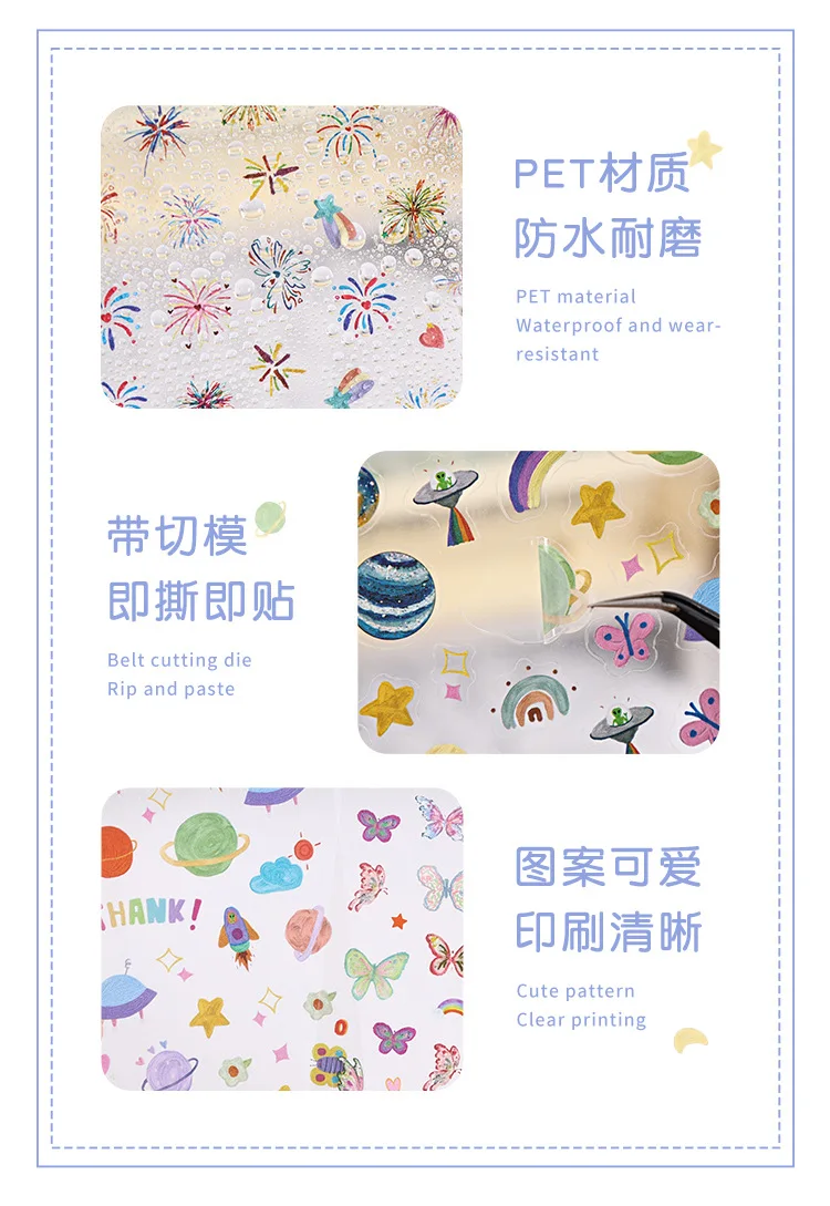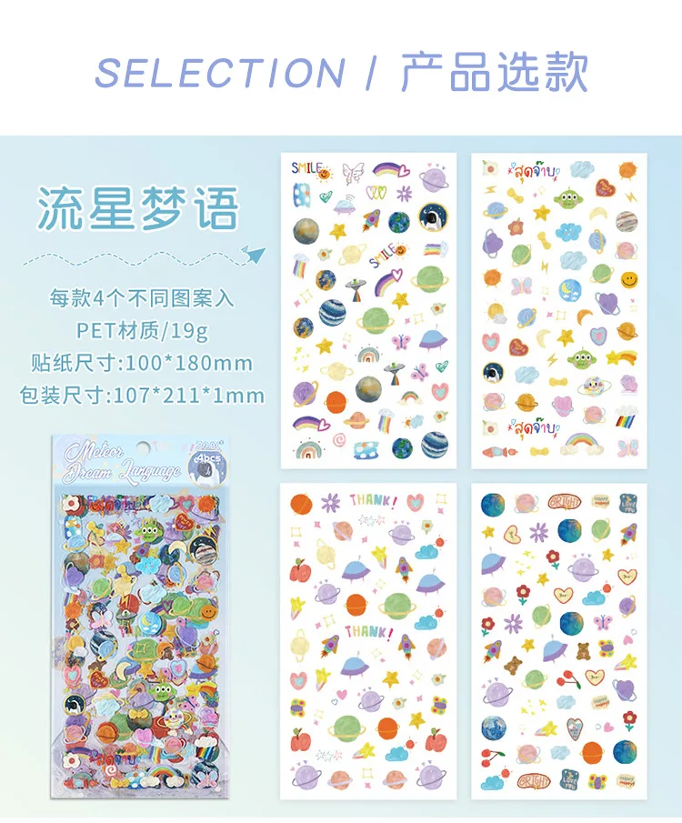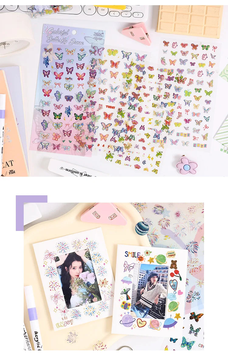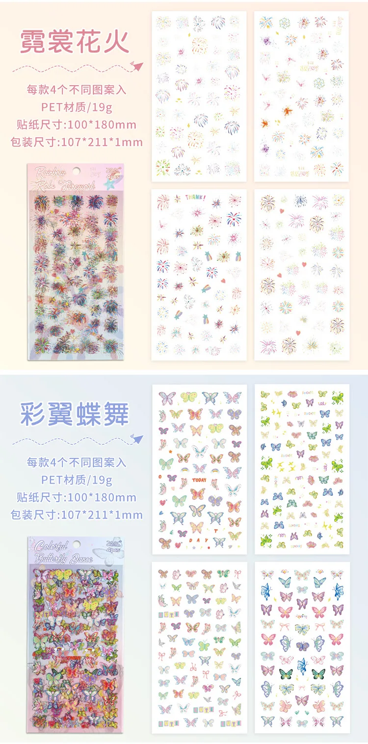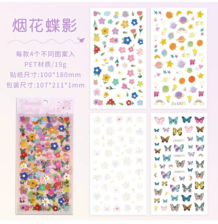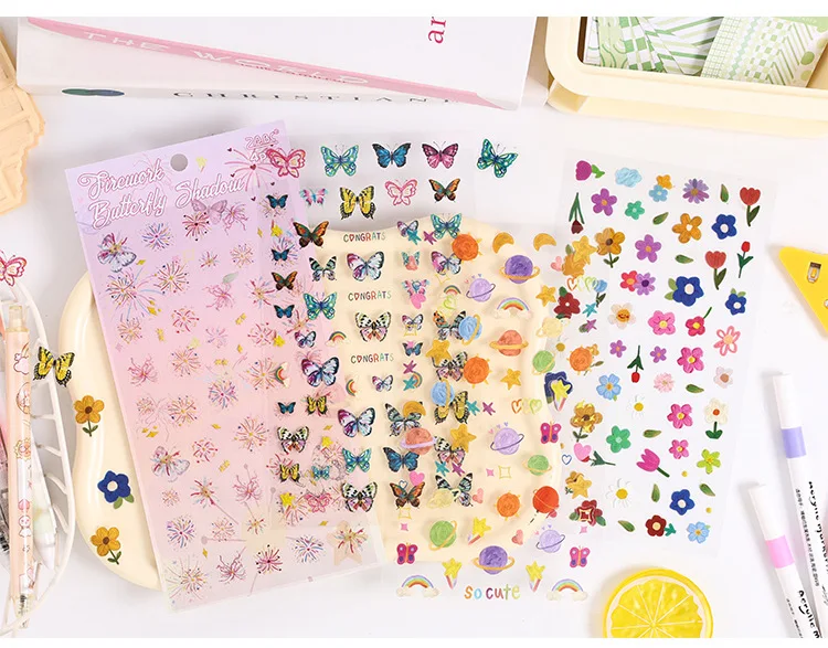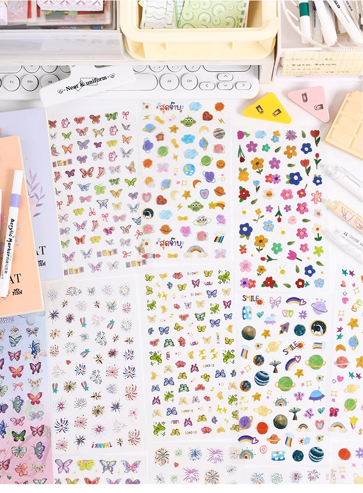 4 sheets Kawaii Cartoon Flat sticker Small label Decorative Diary Album Scrapbooking material Junk Journal Supplies