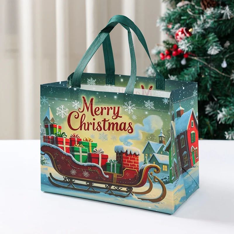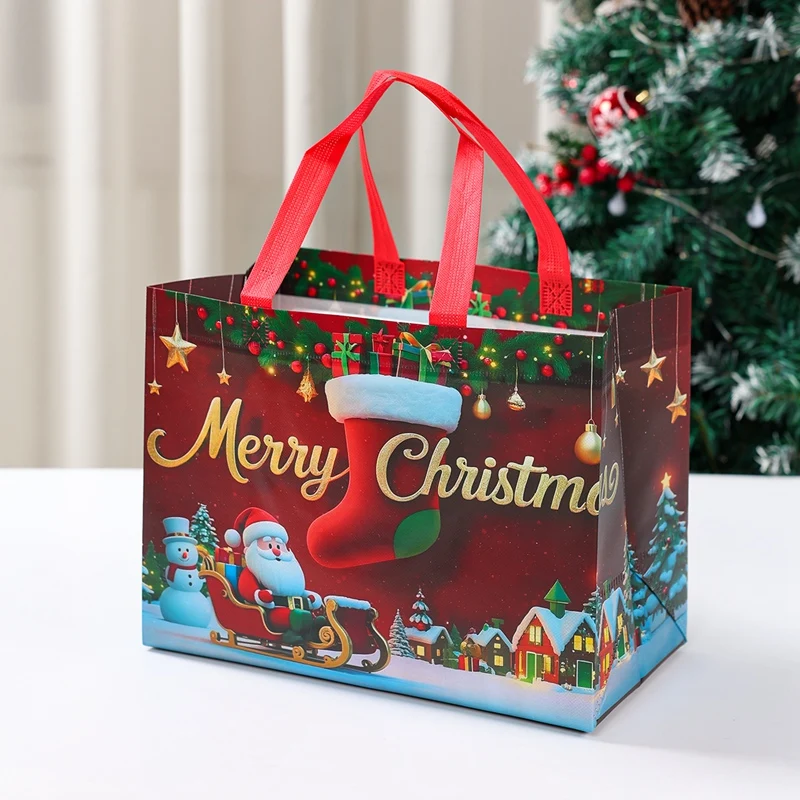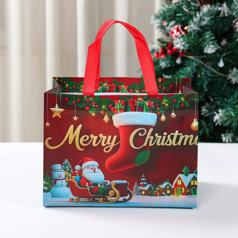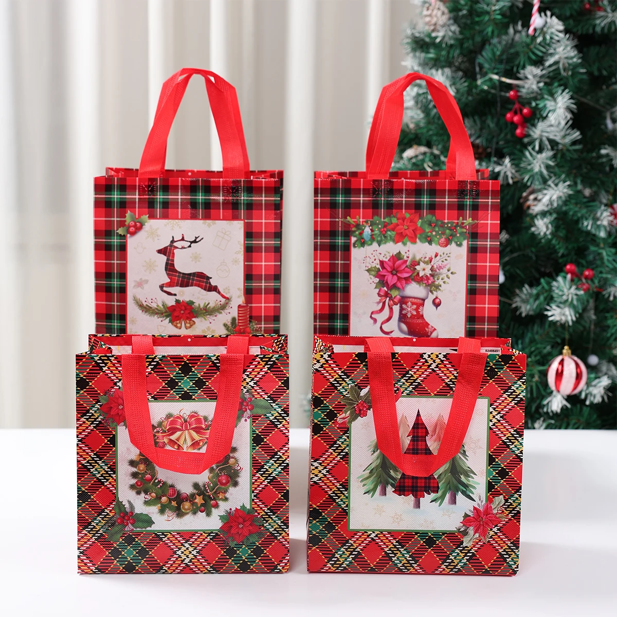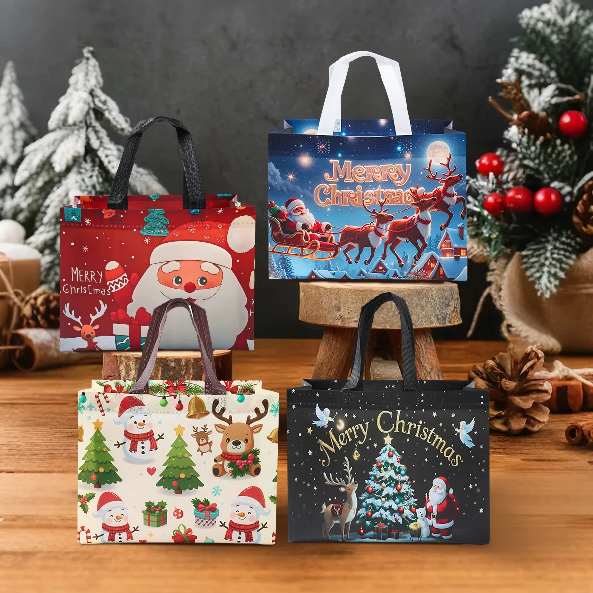 Comprar 4 Uds., bolsos de regalo de Navidad, muñeco de nieve de Santa Claus, bolso de mano no tejido de Navidad con asas, decoración navideña para regalos de 2025 para el hogar