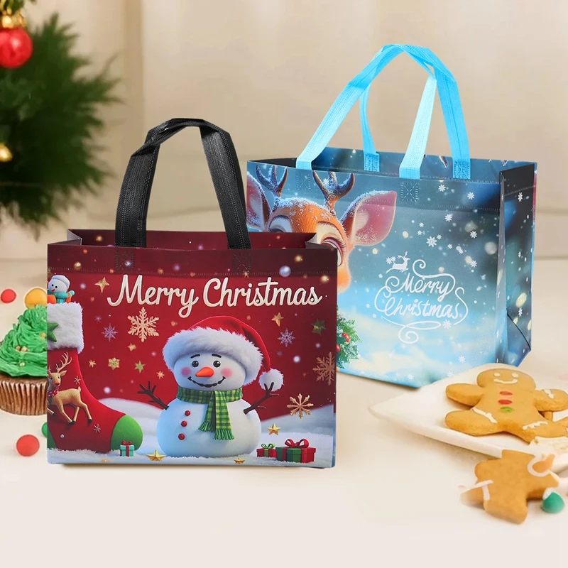 4 Uds., bolsos de regalo de Navidad, muñeco de nieve de Santa Claus, bolso de mano no tejido de Navidad con asas, decoración navideña para regalos de 2025 para el hogar