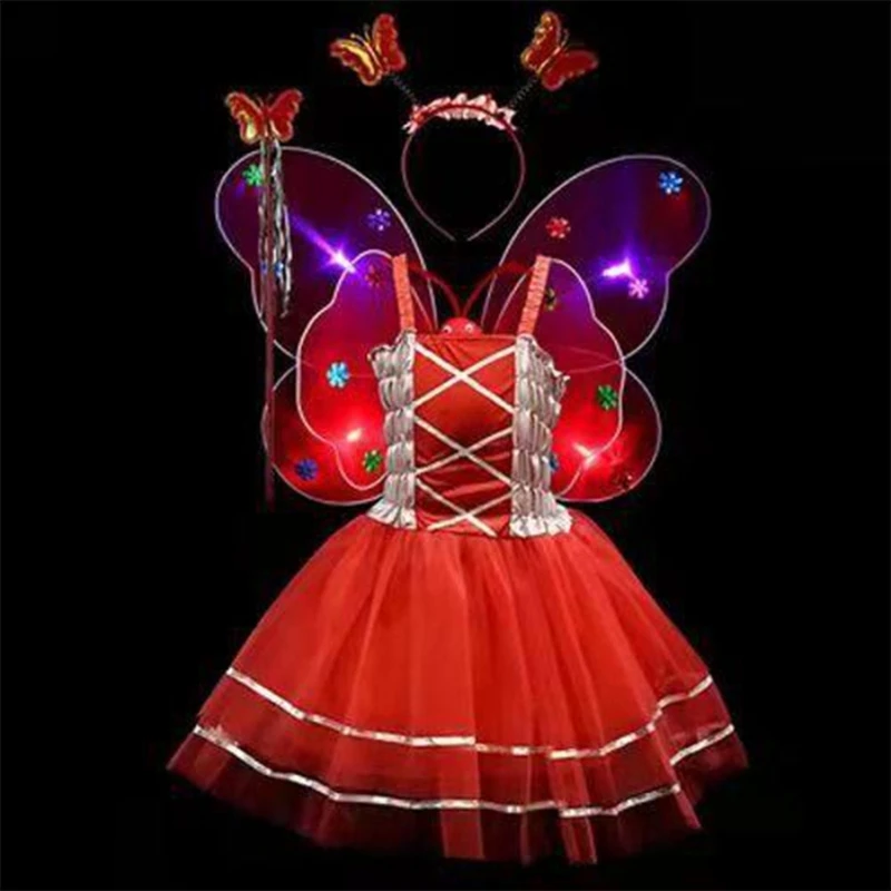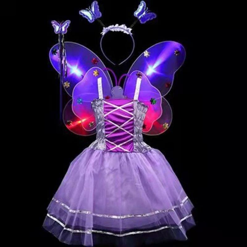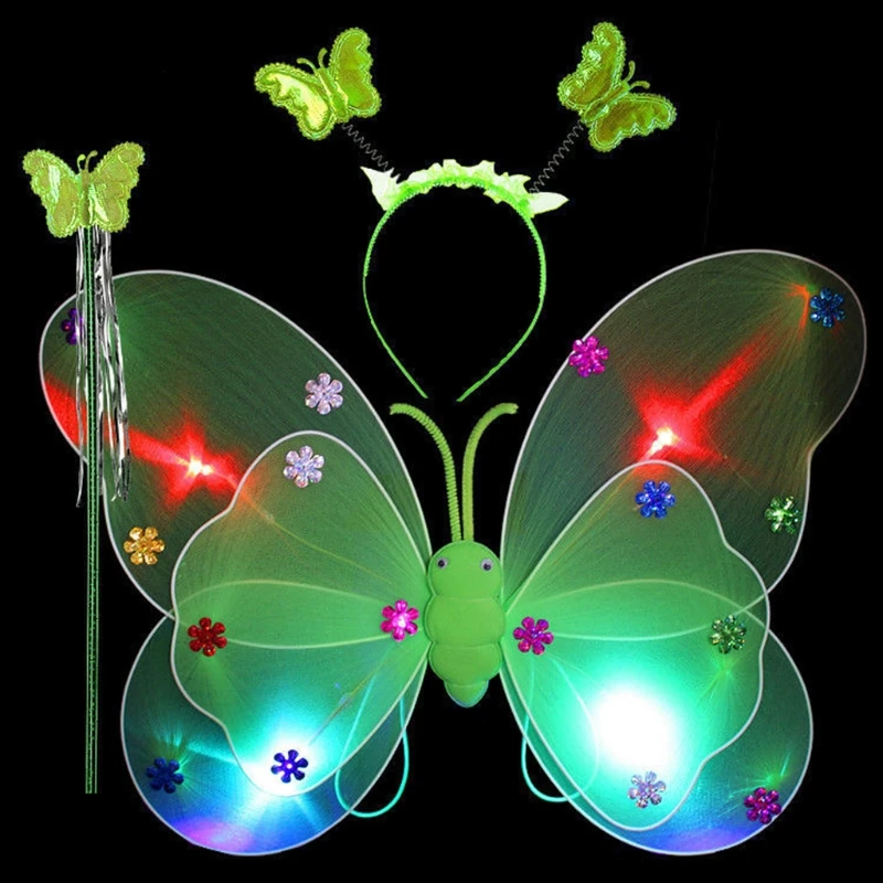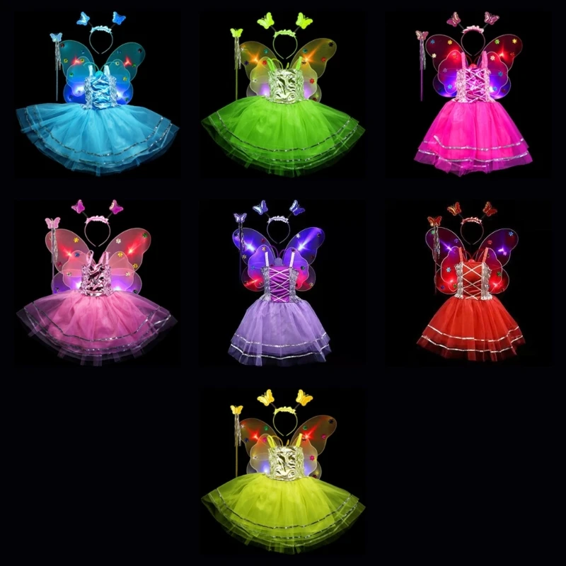 Contiene LED luminoso para alas de mariposa + varita de hadas con borlas + diadema para mariposa Boppers + vestido sin mangas.