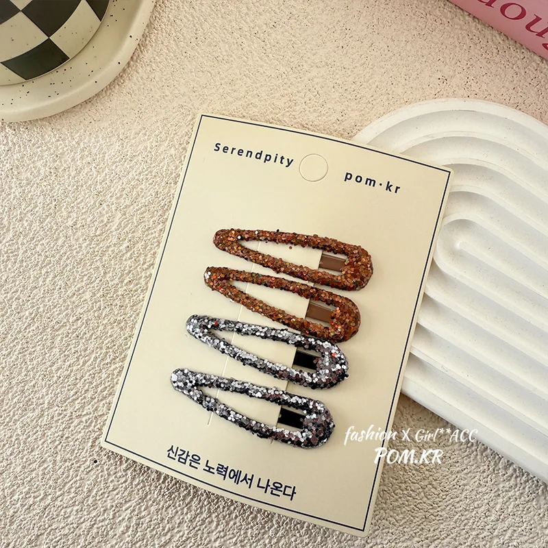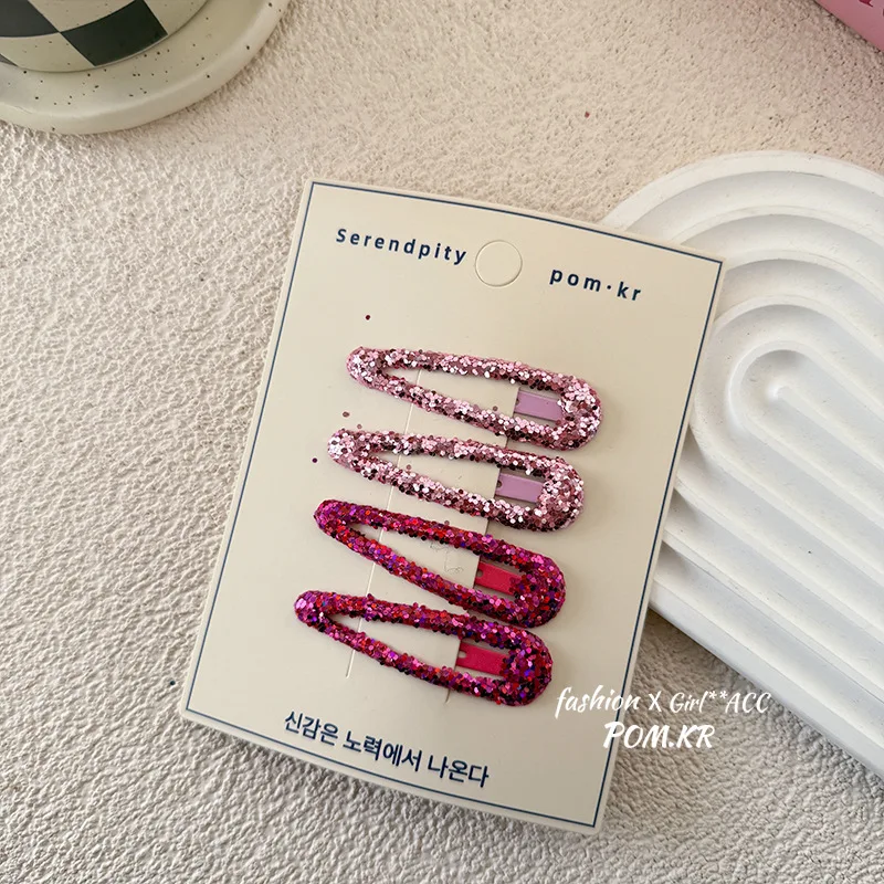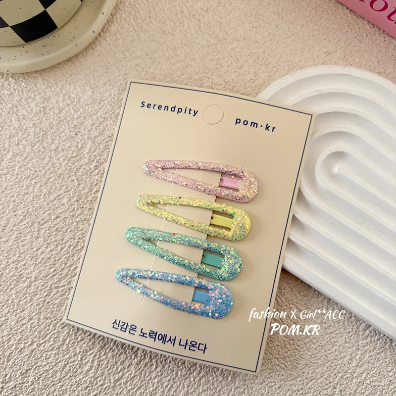 4 Uds. De pasadores sencillos de moda coreana para niñas, pinzas para el pelo de Color sólido con lentejuelas brillantes, accesorios para el cabello para niños