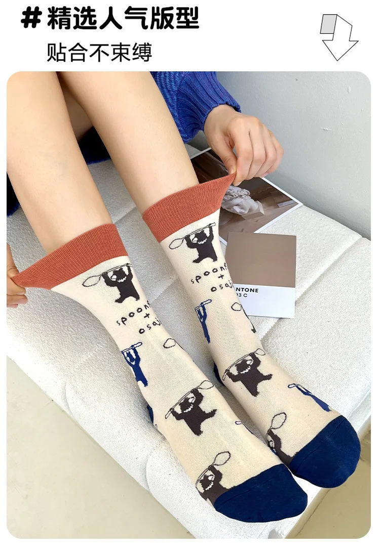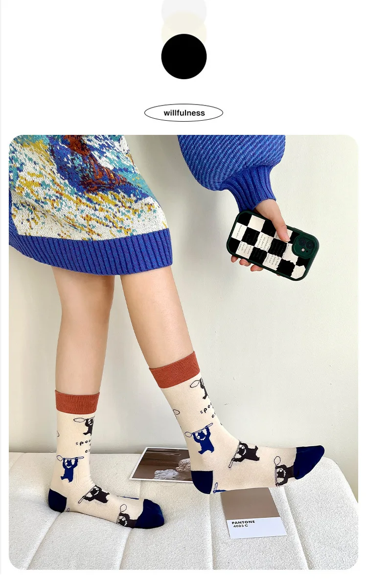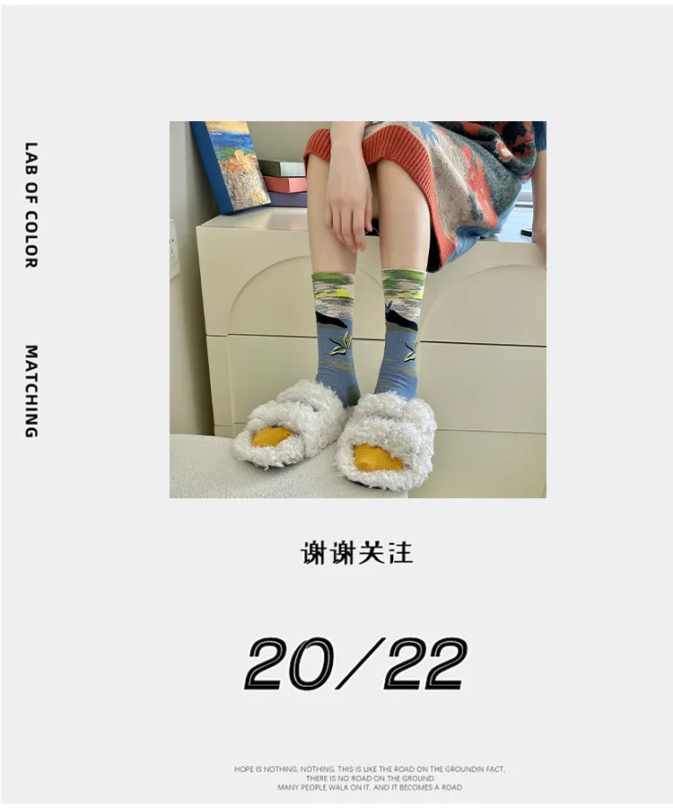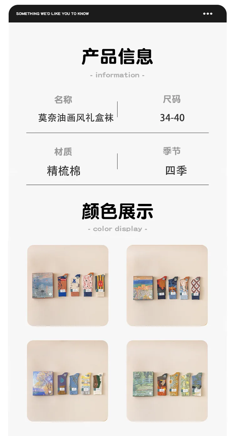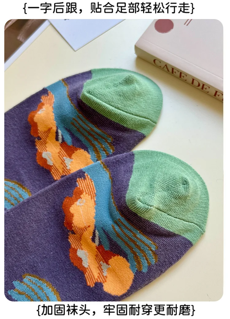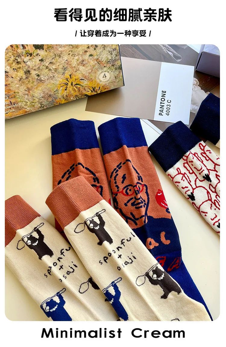 4 Uds Serie Monet calcetines de lona estilo mujer Otoño Invierno moda Retro calcetines de longitud media medias de algodón accesorios de ropa