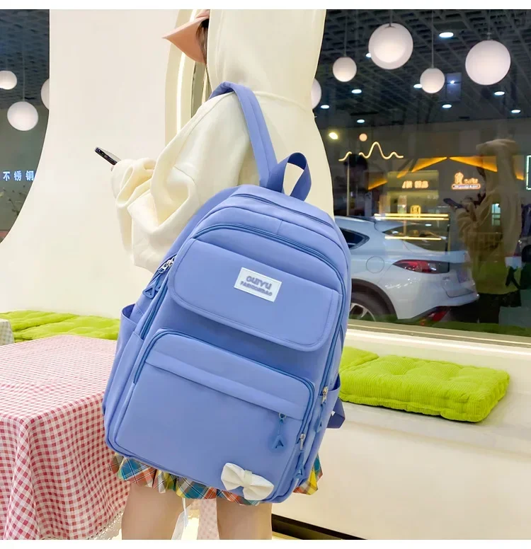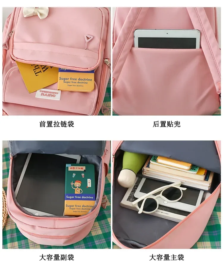 Las bolsas están hechas de tela delgada, la mochila sin soporte para la espalda, las correas sin espuma, se ven de mayor calidad en la foto.