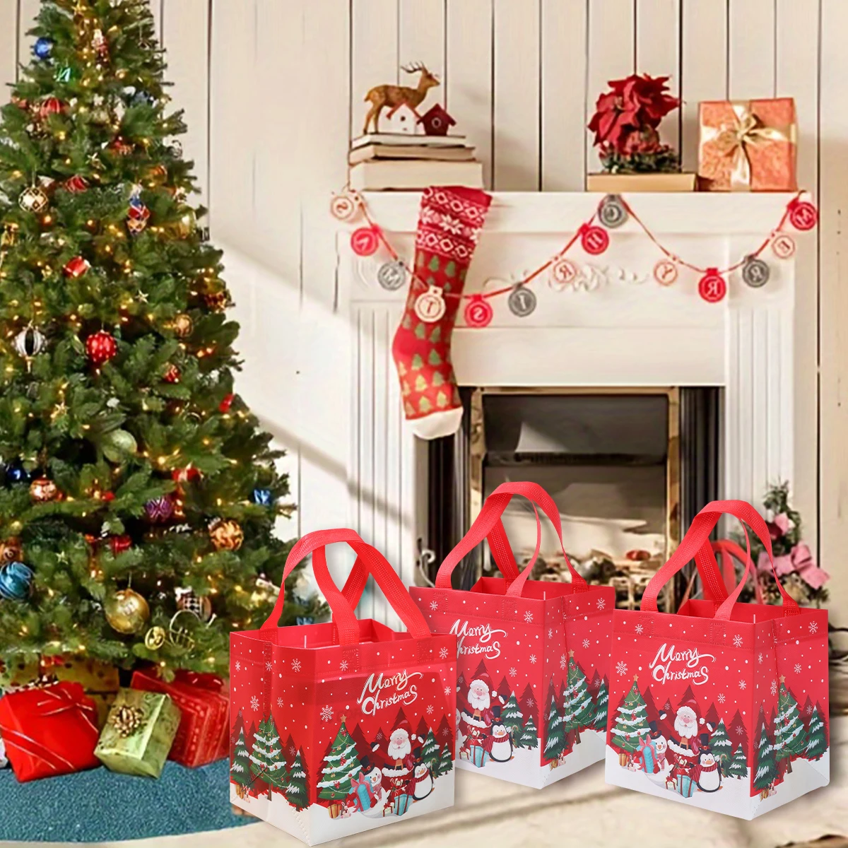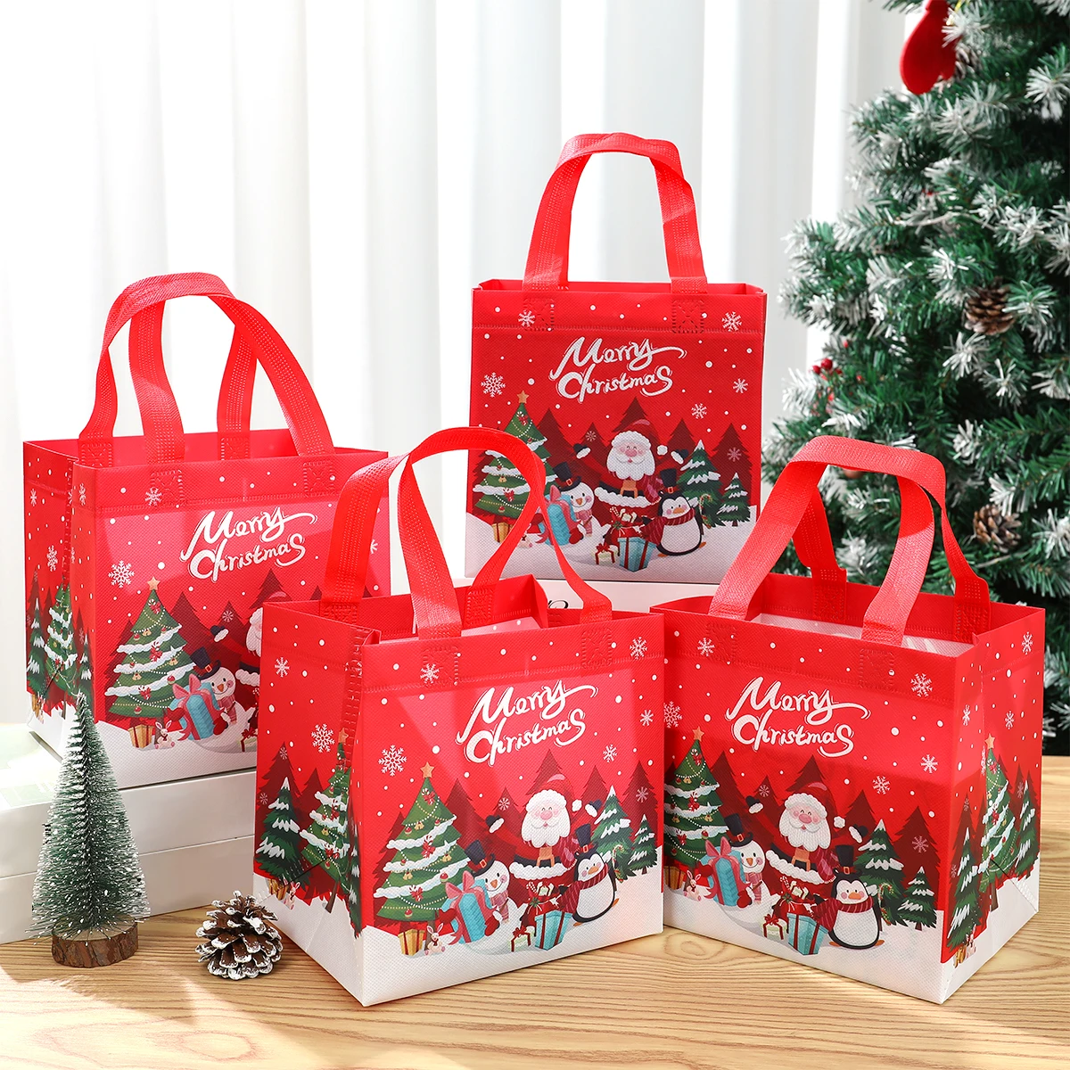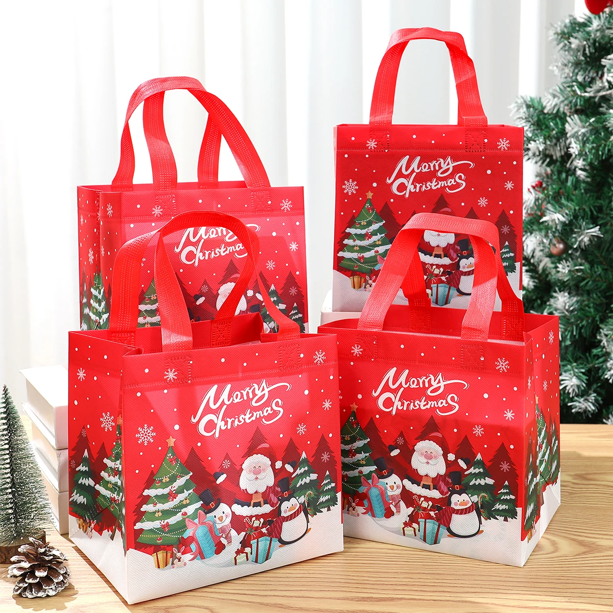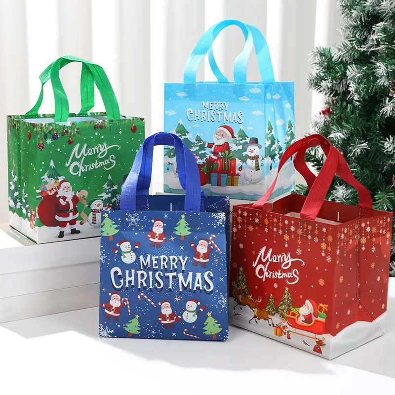 4 unidades, bolsas de regalo no tejidas de Santa Claus de Navidad, decoración navideña para el hogar, 2024 de Navidad, bolso de mano de muñeco de nieve, 2025 de regalo de Año Nuevo