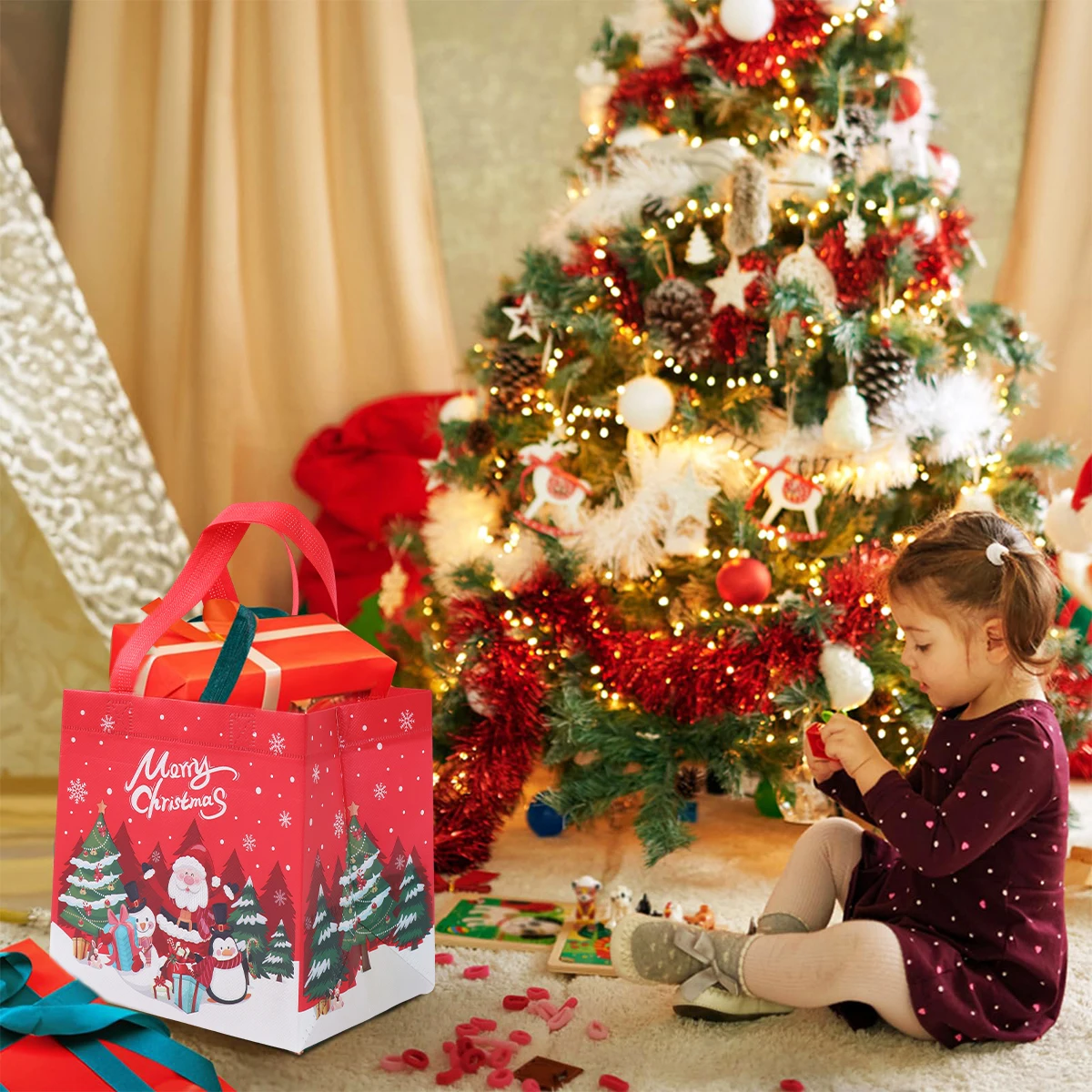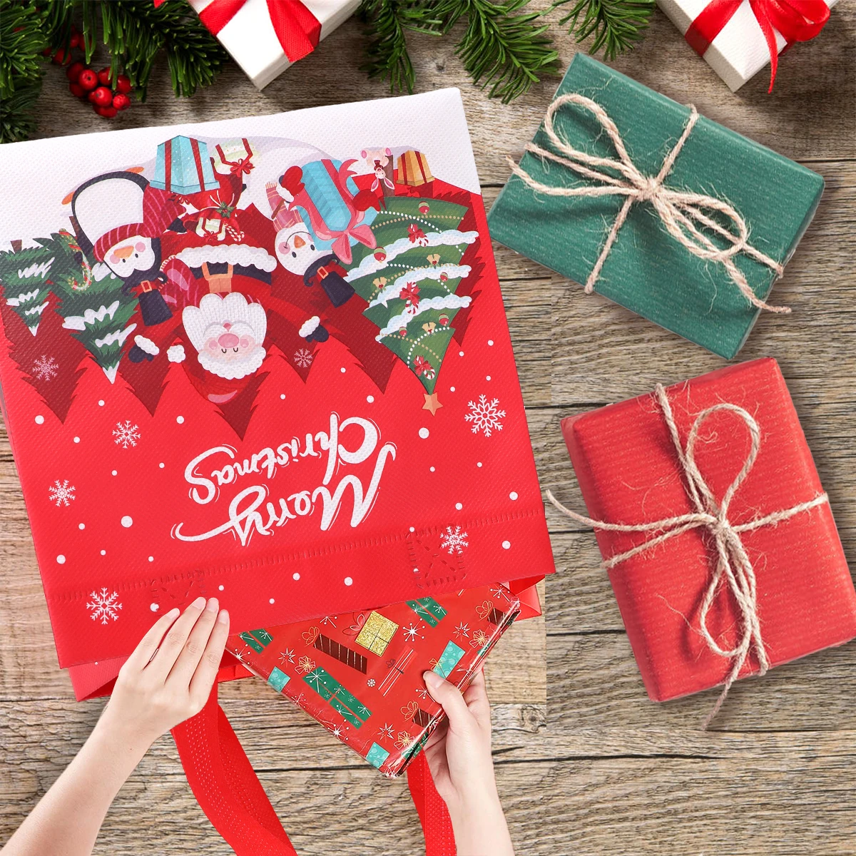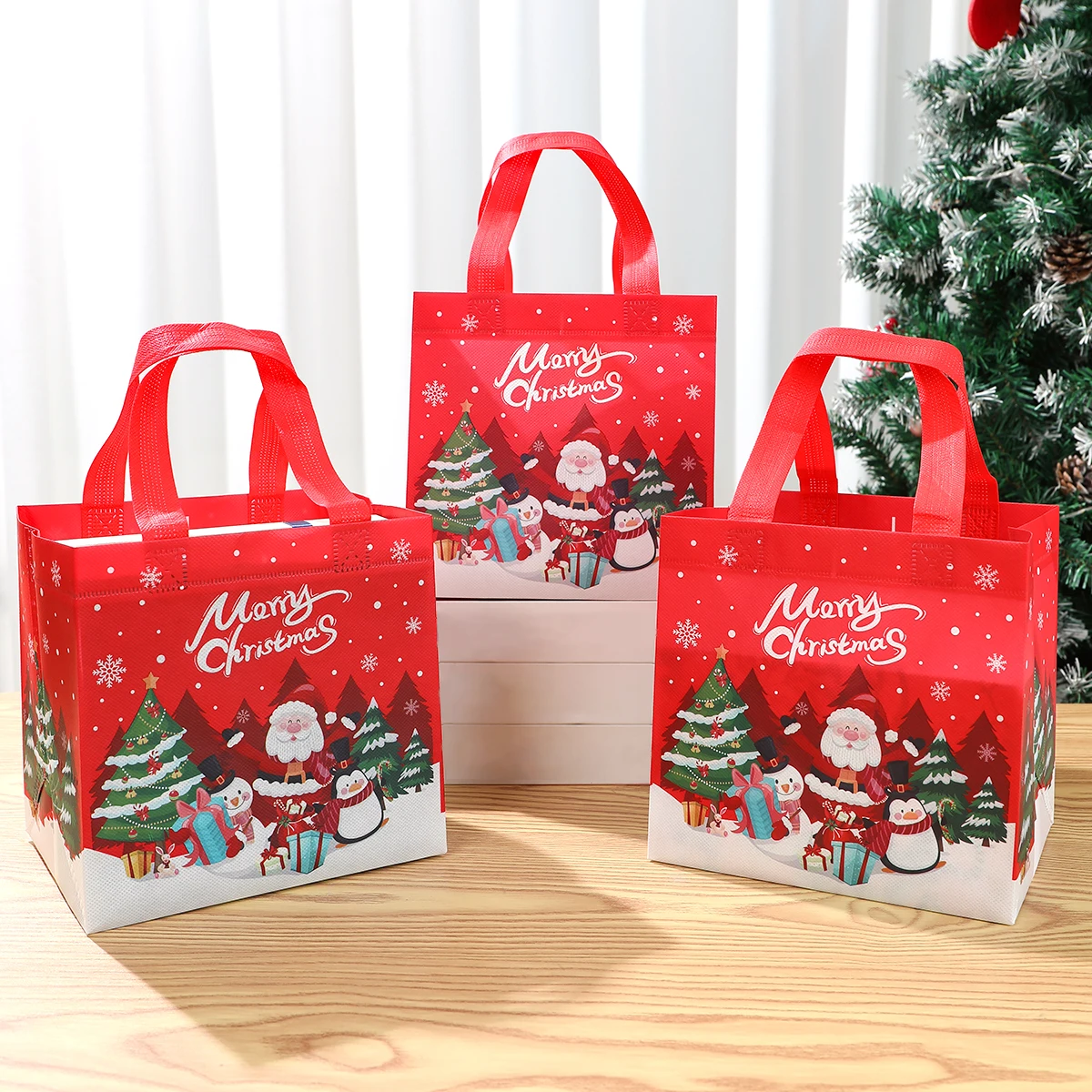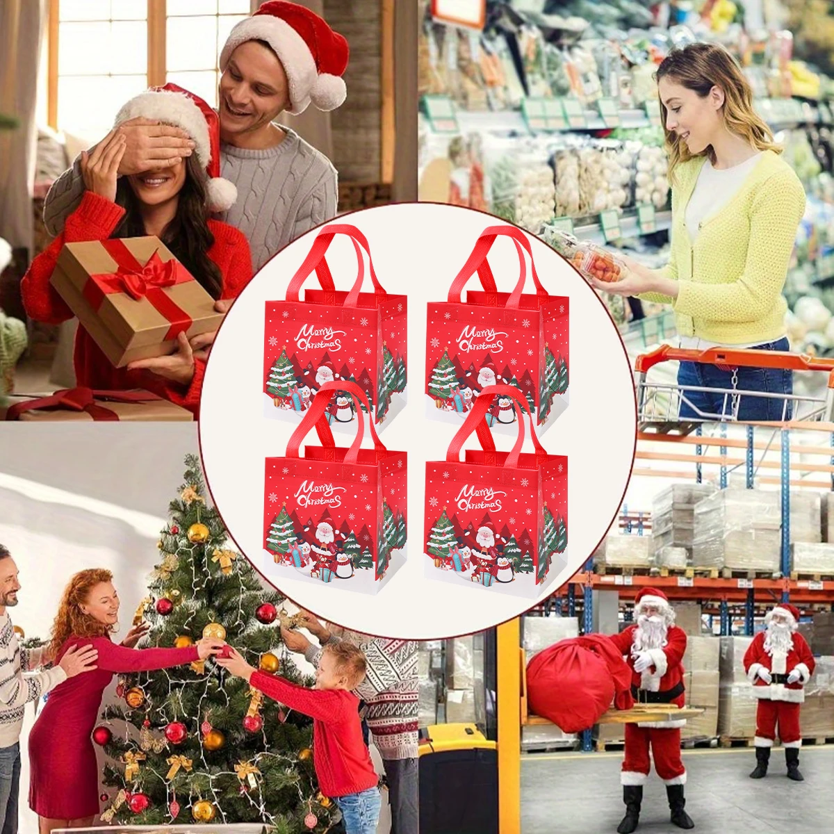 4 unidades, bolsas de regalo no tejidas de Santa Claus de Navidad, decoración navideña para el hogar, 2024 de Navidad, bolso de mano de muñeco de nieve, 2025 de regalo de Año Nuevo