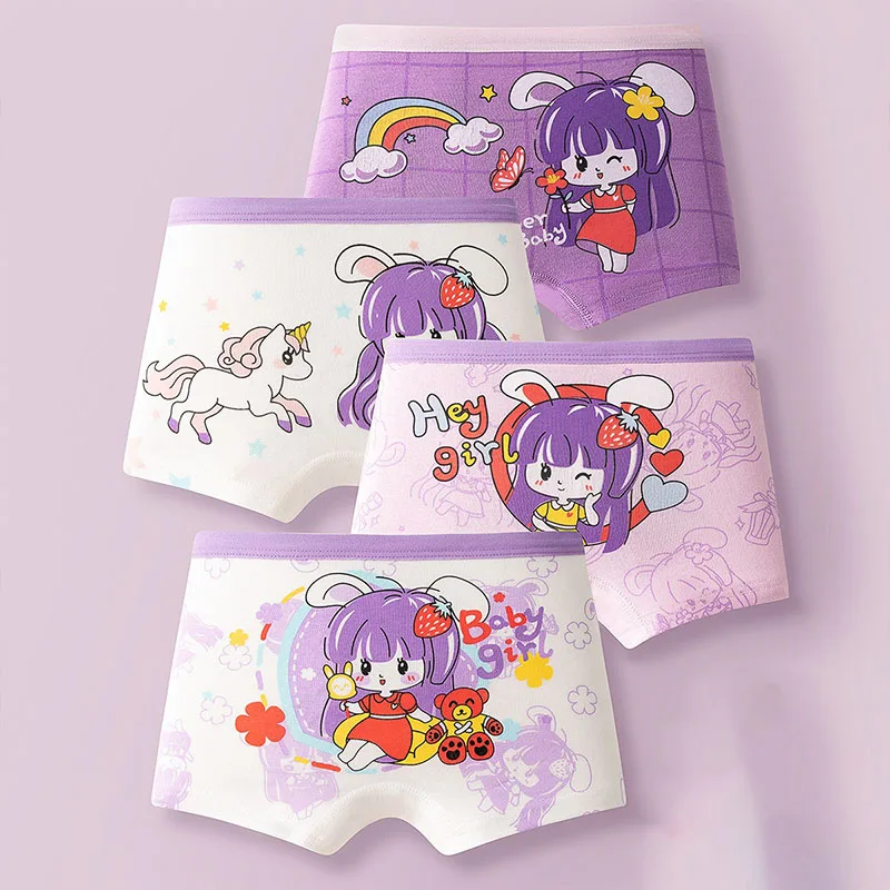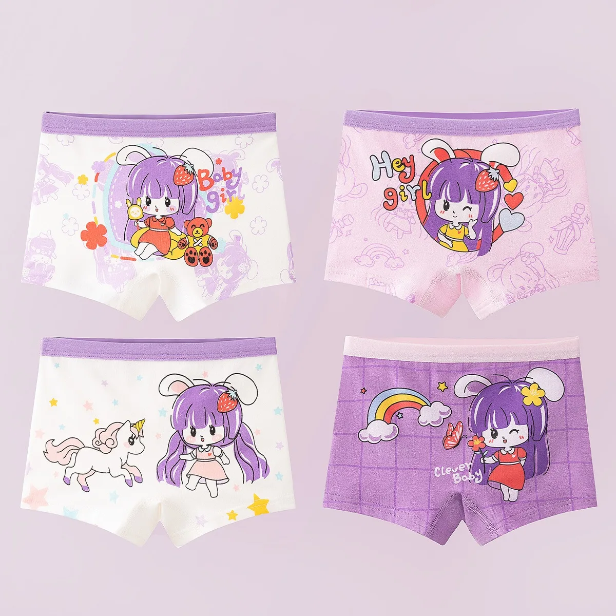Comprar 4 unids/lote de calzoncillos Boxer de algodón para niñas, bragas bonitas y dulces de dibujos animados para niñas, ropa interior cómoda para niños, pantalones cortos lavables para niñas