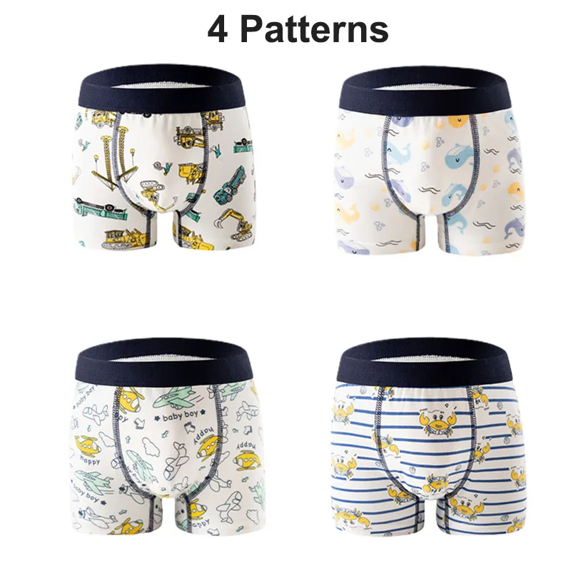 4 unids/lote de calzoncillos Boxer para niños de algodón puro suave que no se decolora, ropa interior sin fluorescencia para niños, calzoncillos Boxer con estampado de dibujos animados para niños