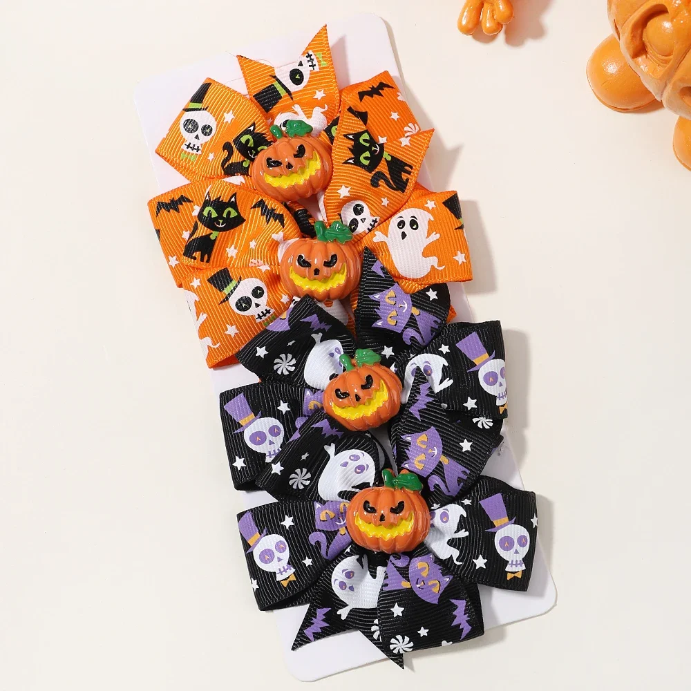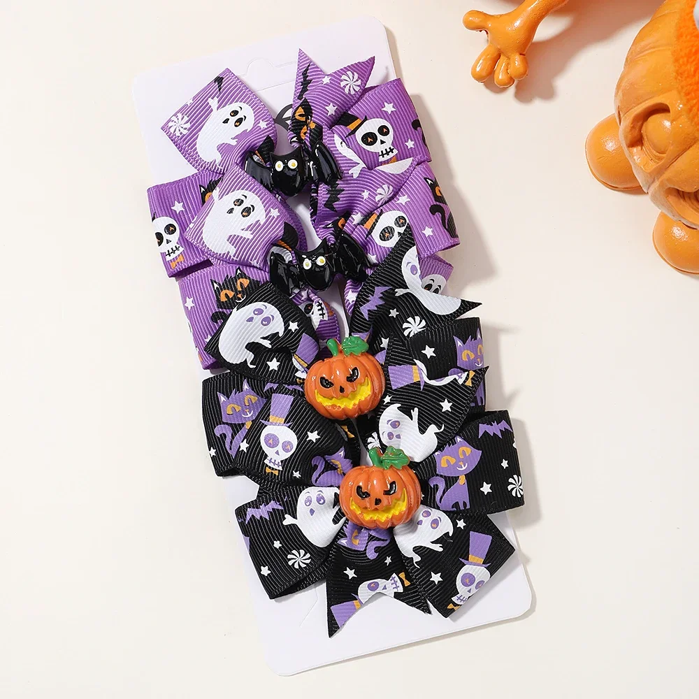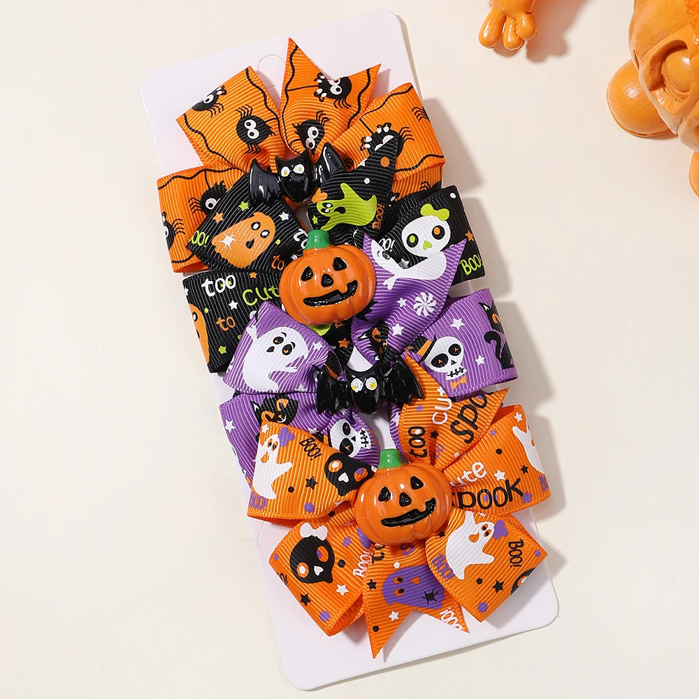 4 unids/set cinta de Halloween niños lazos horquilla para niña divertida calabaza horquilla animación Bowknot horquilla accesorios para el cabello