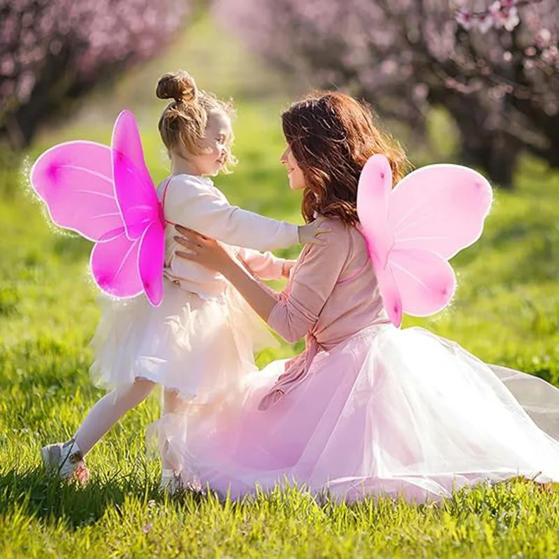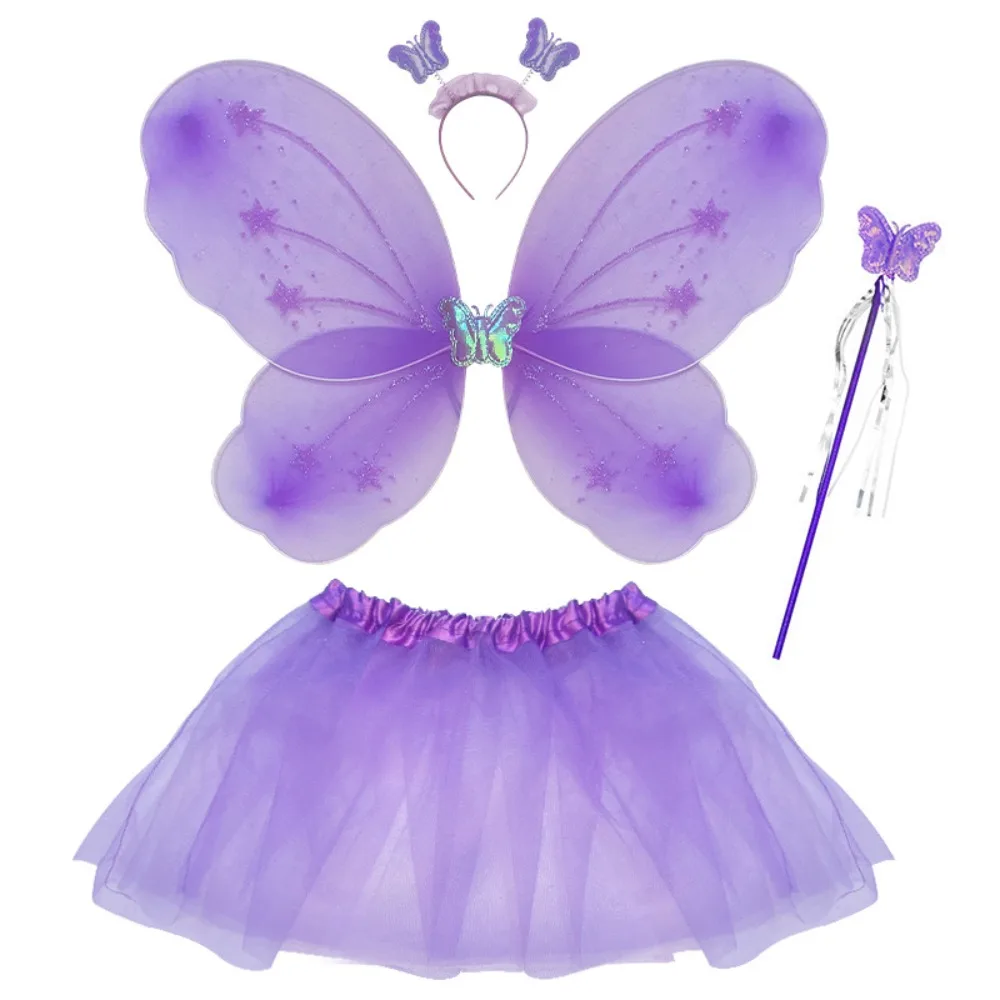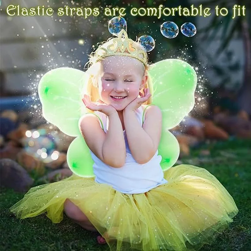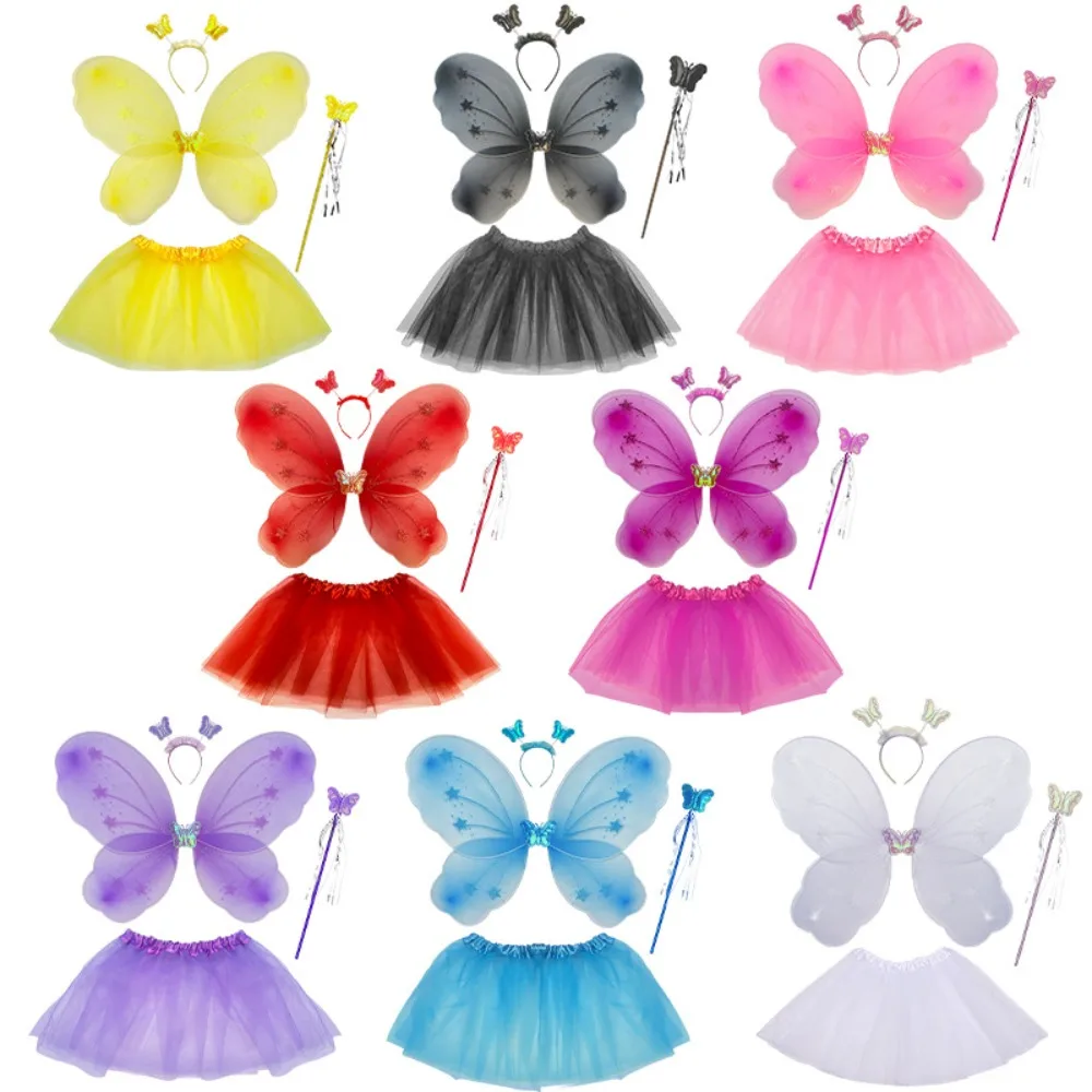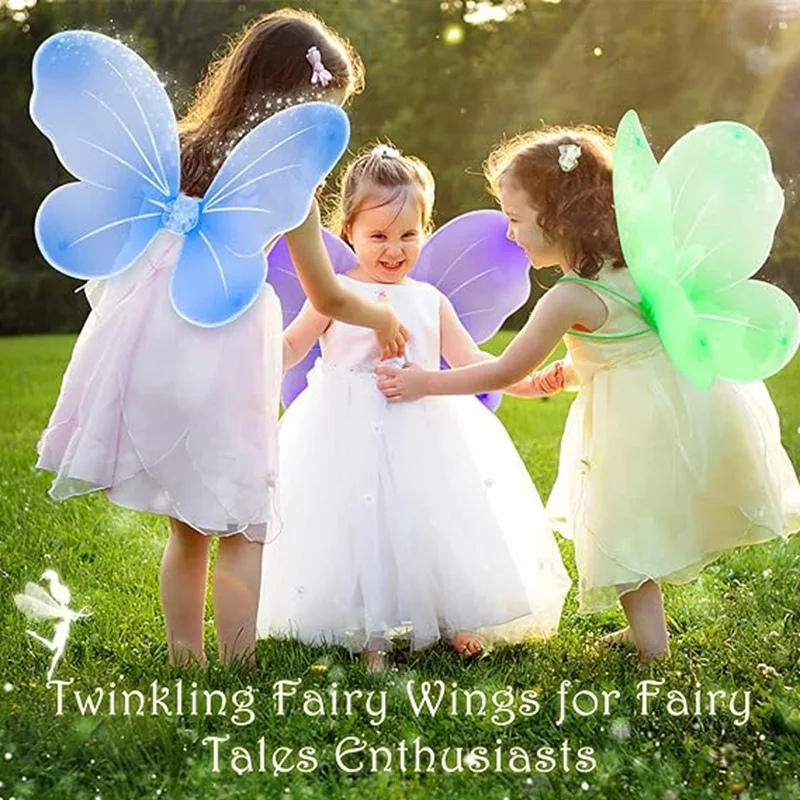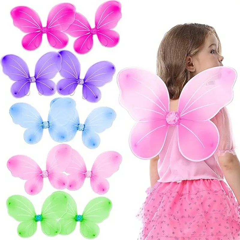 4 unids/set de diadema de mariposa para niños, alas, bonitos accesorios de fiesta con varita de hada, vestido de mariposa brillante, disfraz de Cosplay de ala de hada