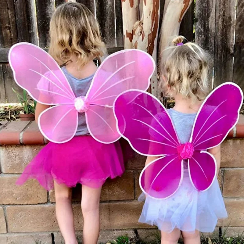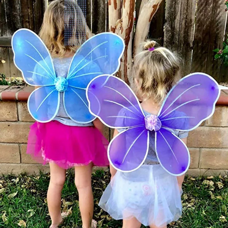 Comprar 4 unids/set de diadema de mariposa para niños, alas, bonitos accesorios de fiesta con varita de hada, vestido de mariposa brillante, disfraz de Cosplay de ala de hada