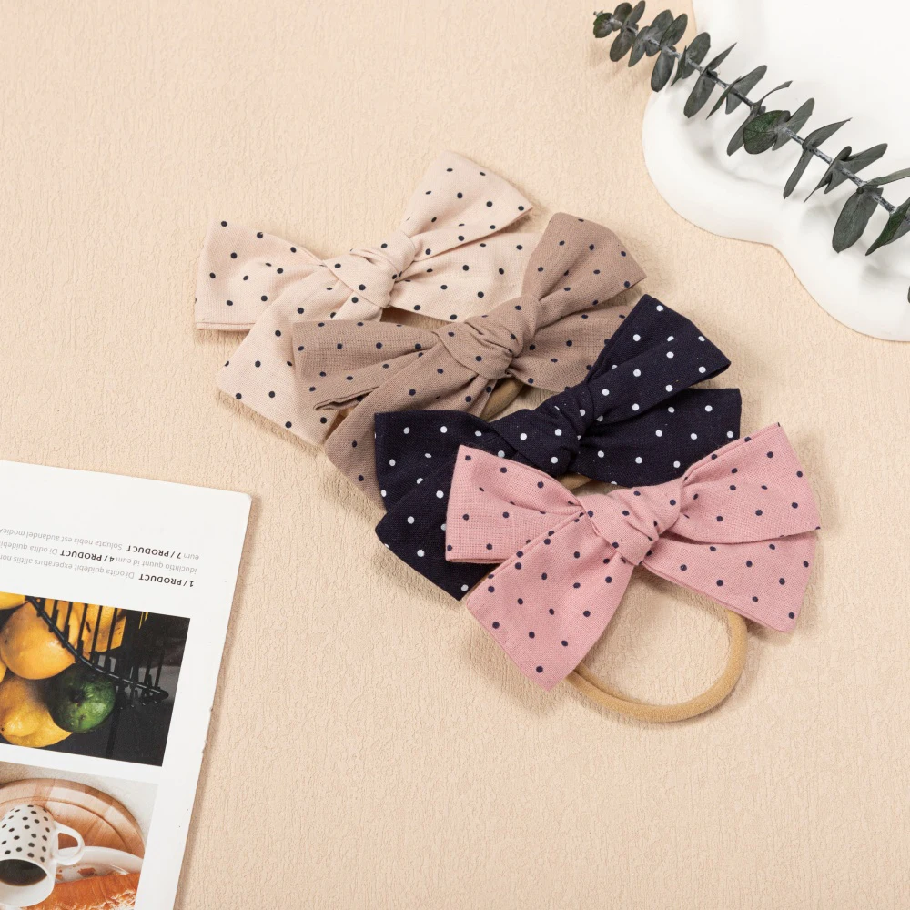 Comprar 4 unids/set de diademas con lazo con estampado de puntos, lazos, bandas elásticas para el cabello para bebé, conjunto de diadema elegante a la moda, accesorios para el cabello