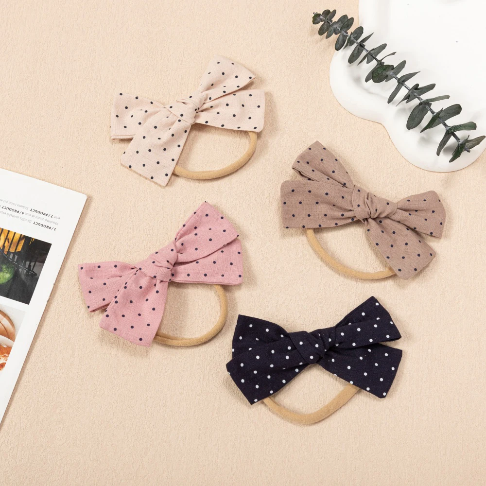 Comprar 4 unids/set de diademas con lazo con estampado de puntos, lazos, bandas elásticas para el cabello para bebé, conjunto de diadema elegante a la moda, accesorios para el cabello