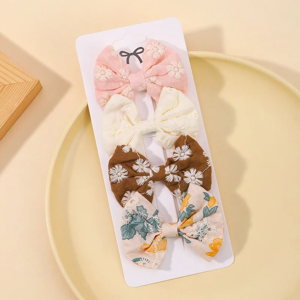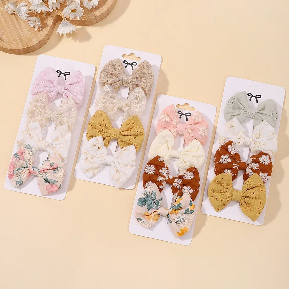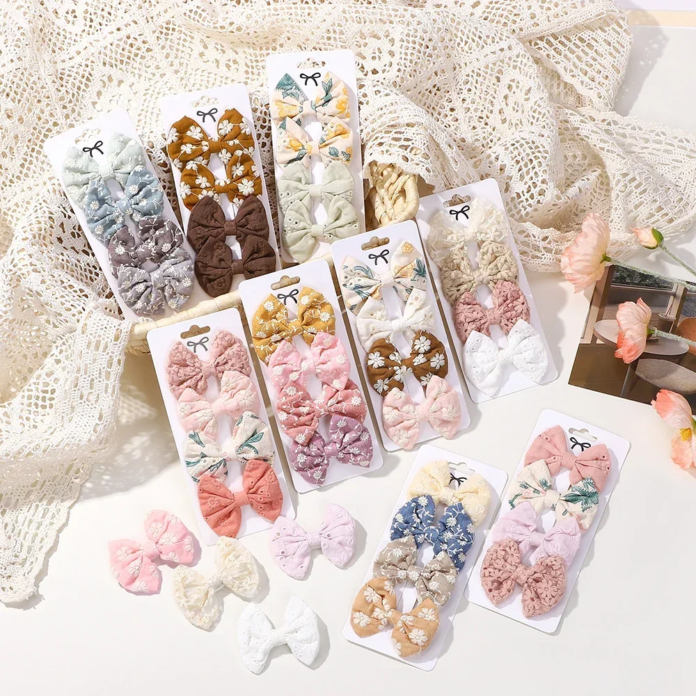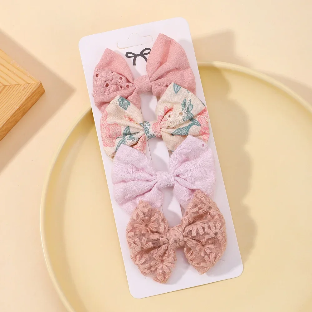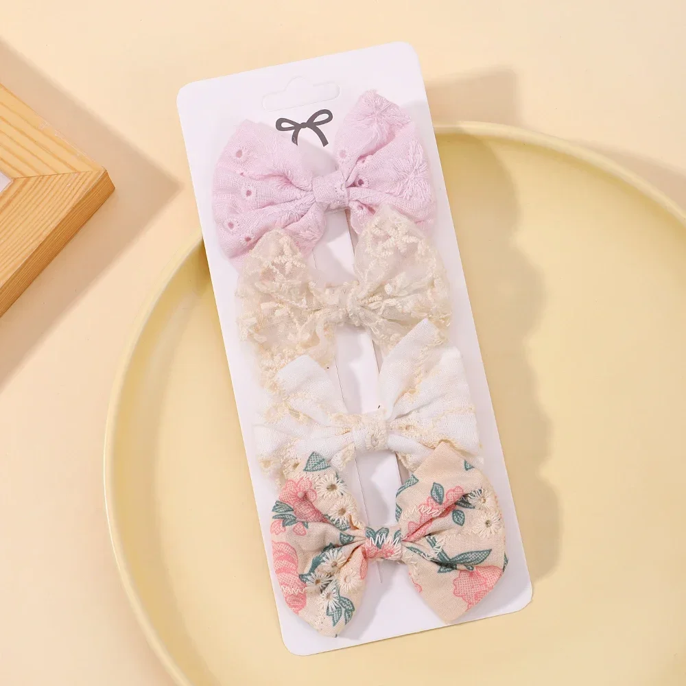 4 unids/set encantadoras pinzas con lazo horquillas bebé niña estilo Pastoral fresco horquillas accesorios para el cabello niños estampado hueco horquilla
