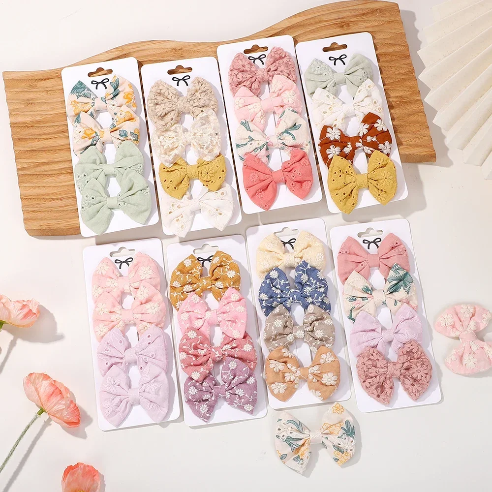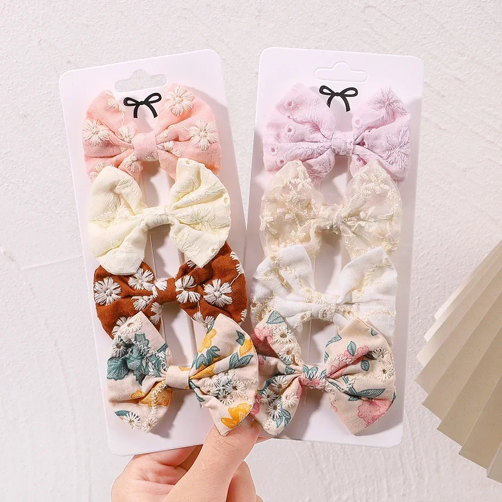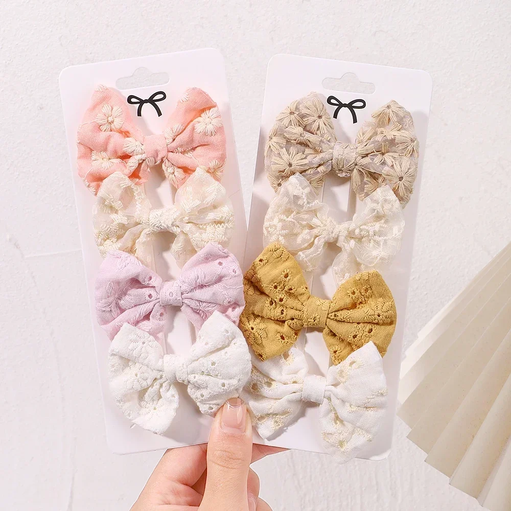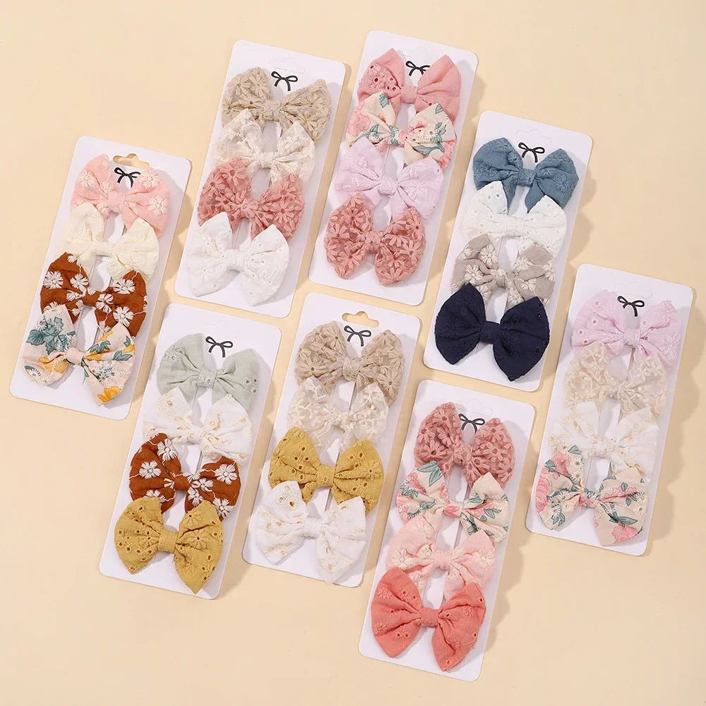 4 unids/set encantadoras pinzas con lazo horquillas bebé niña estilo Pastoral fresco horquillas accesorios para el cabello niños estampado hueco horquilla