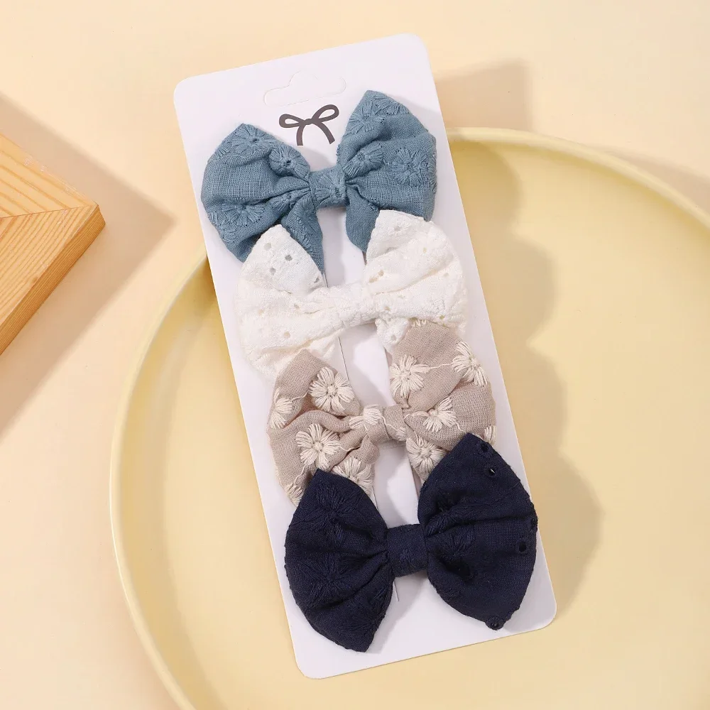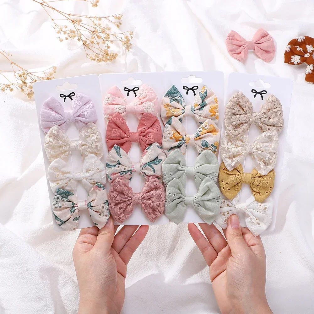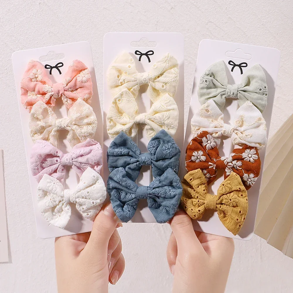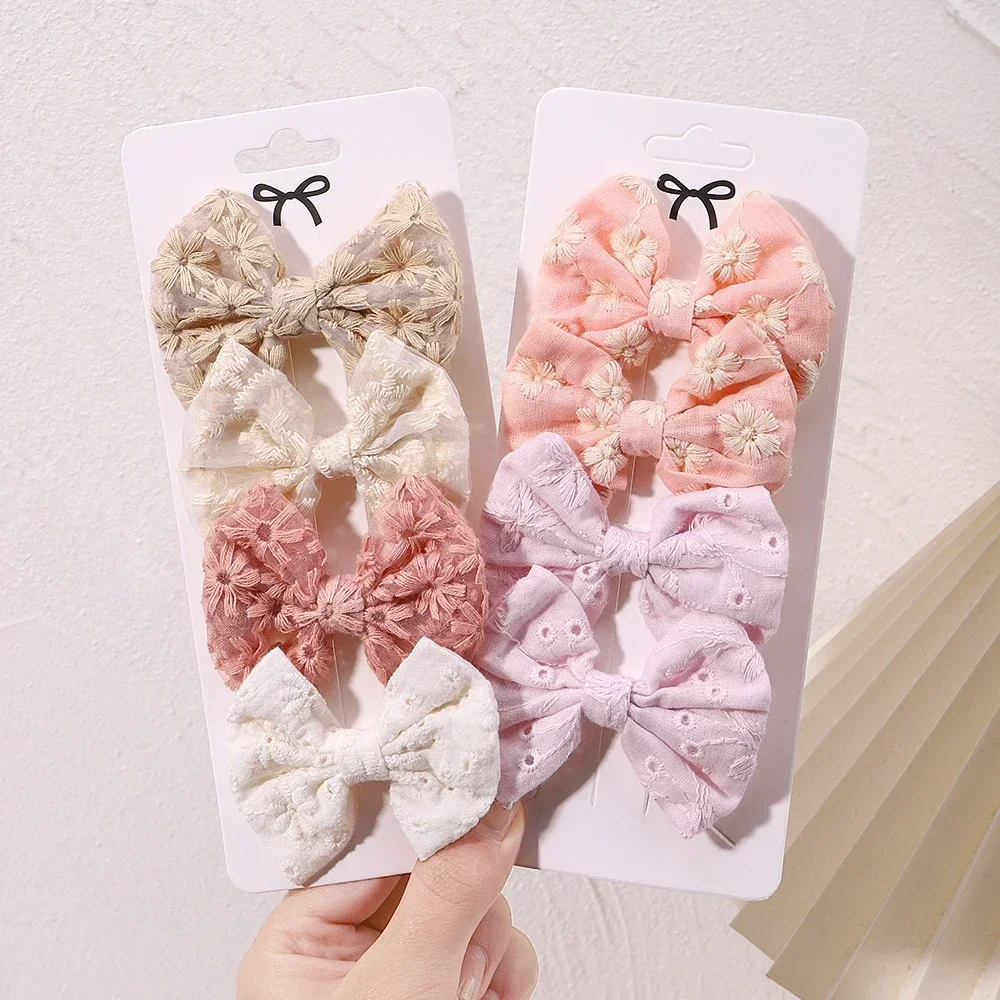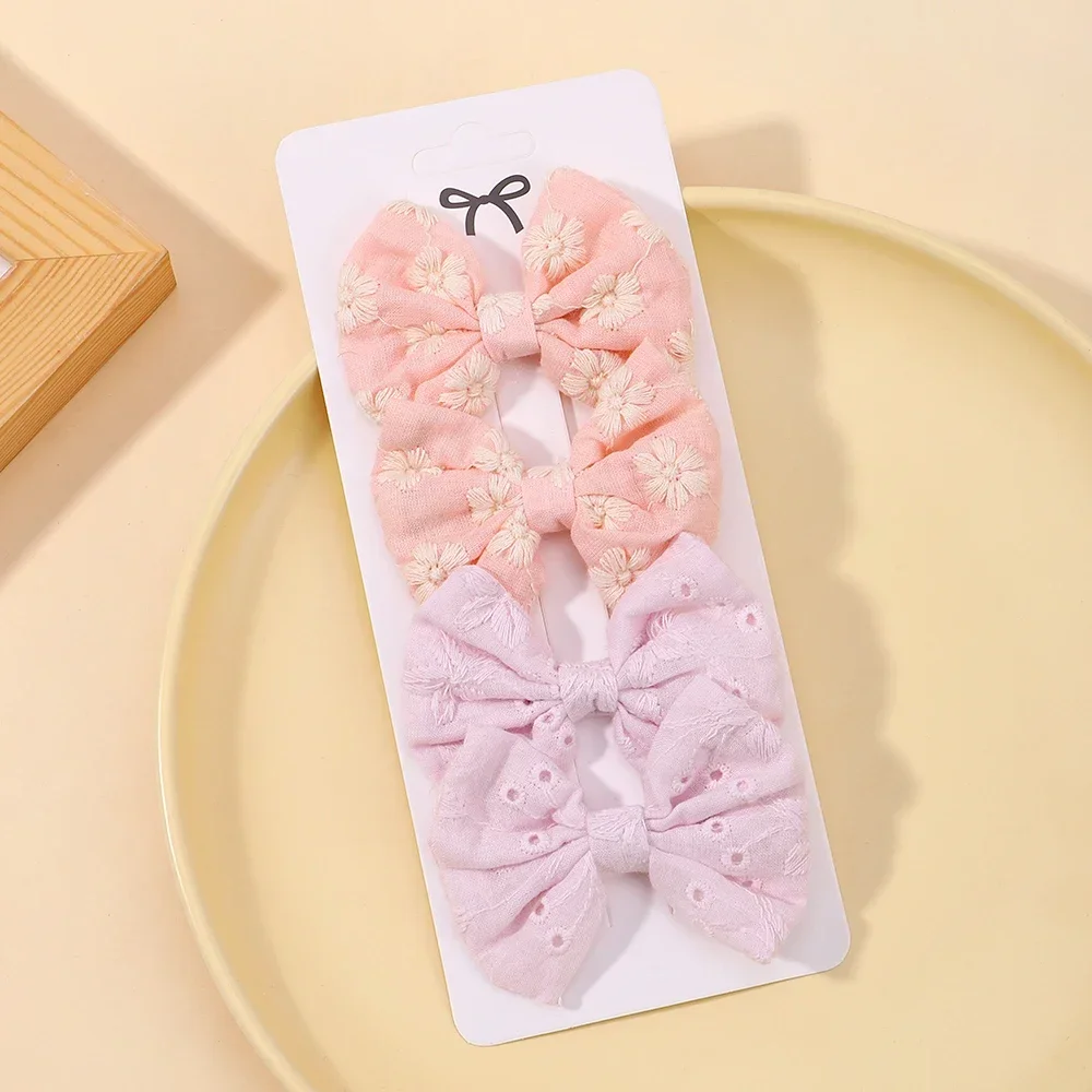 4 unids/set encantadoras pinzas con lazo horquillas bebé niña estilo Pastoral fresco horquillas accesorios para el cabello niños estampado hueco horquilla