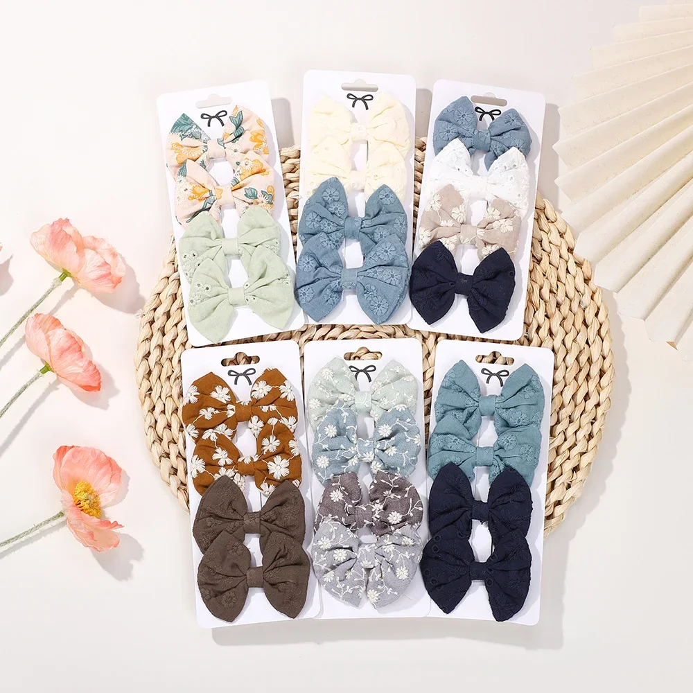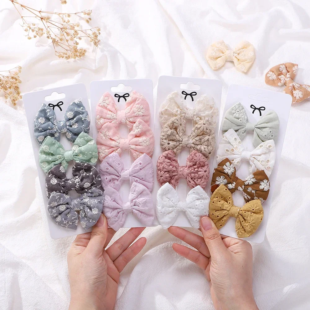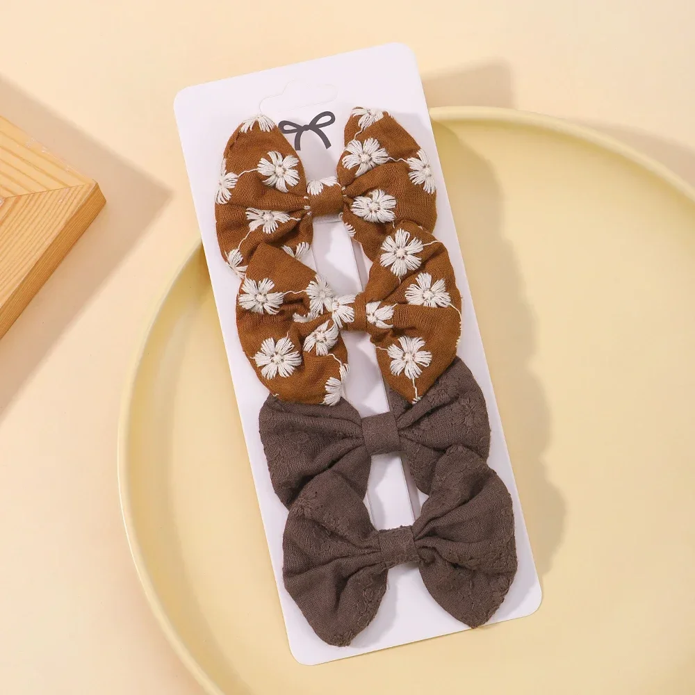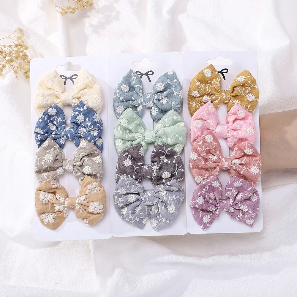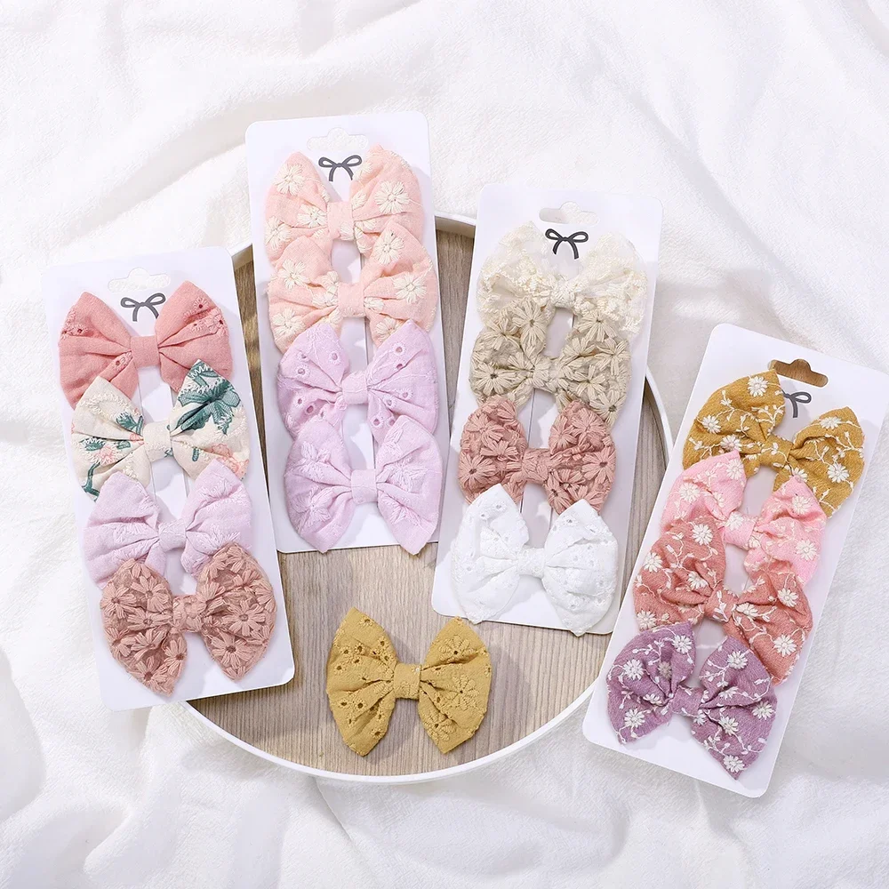 4 unids/set encantadoras pinzas con lazo horquillas bebé niña estilo Pastoral fresco horquillas accesorios para el cabello niños estampado hueco horquilla