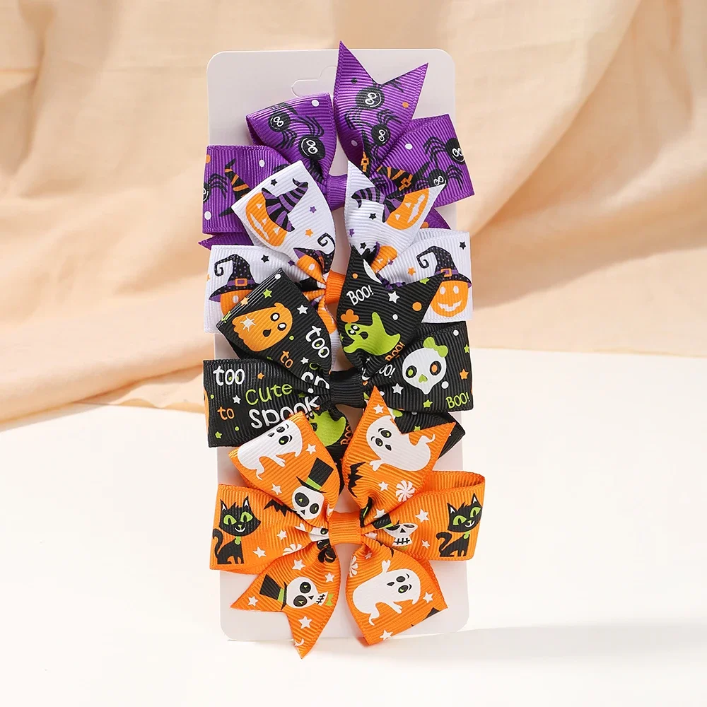 4 unids/set Halloween niños arco Clip de pelo horquillas para niña divertido creativo calabaza murciélago fiesta cinta animación Bowknot horquilla sombreros