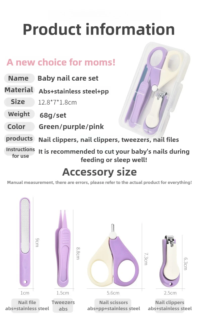4 unids/set herramientas para el cuidado del bebé lima de uñas para bebé recién nacido tijera de uñas chico cortaúñas portátil recortadora Kit de pinzas herramientas de cuidado