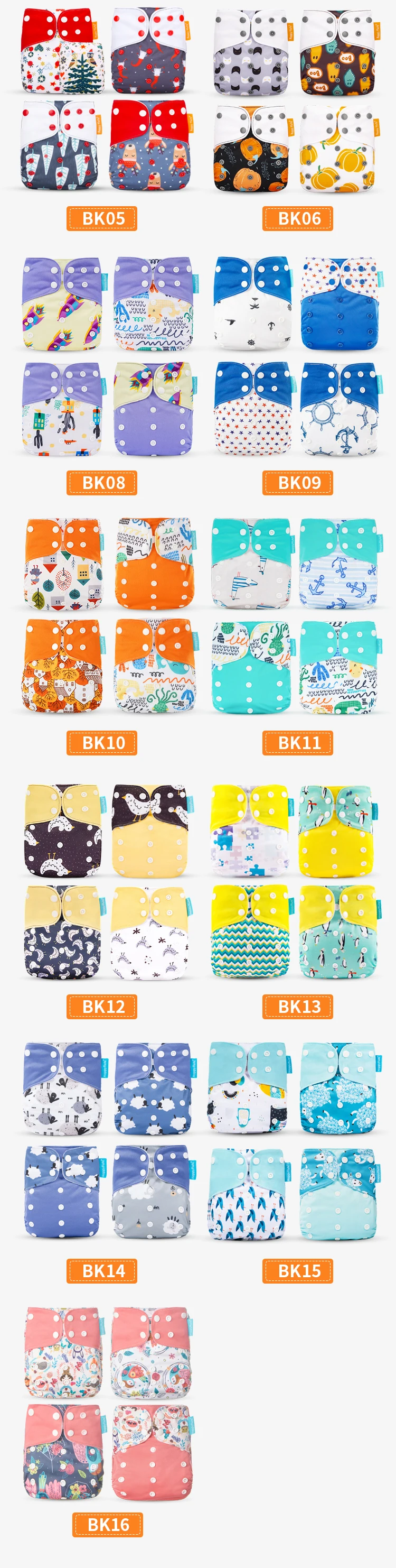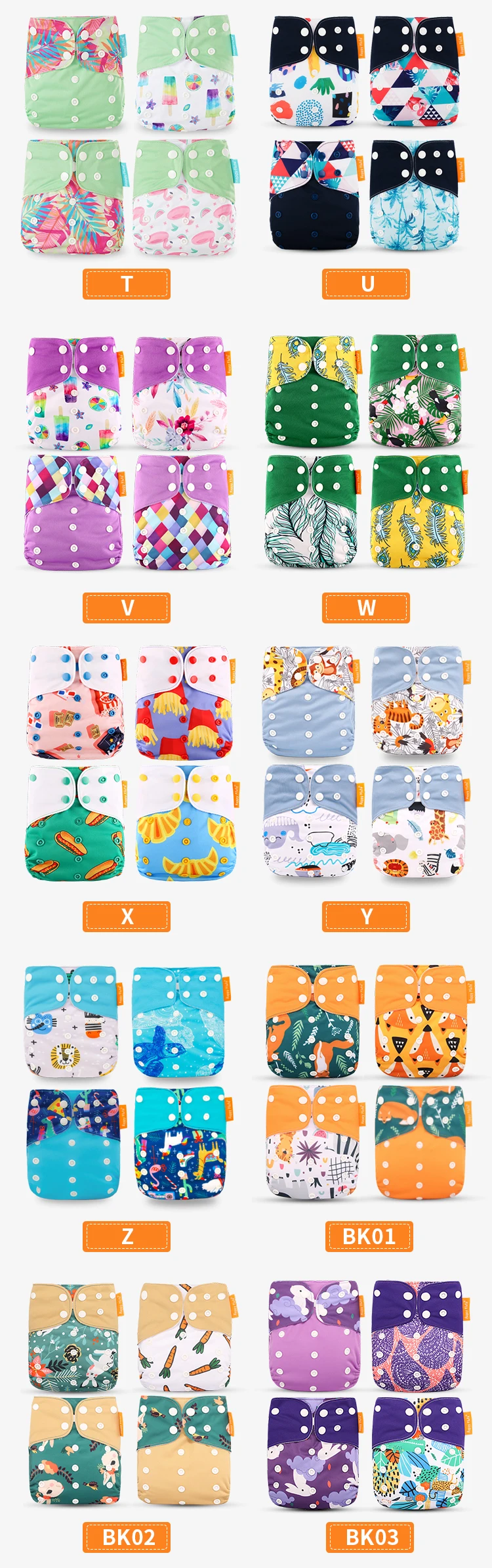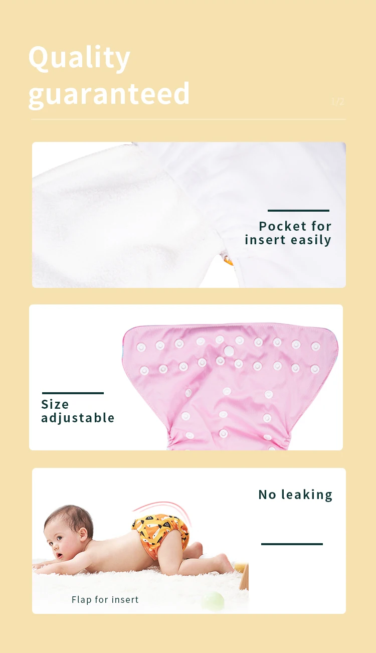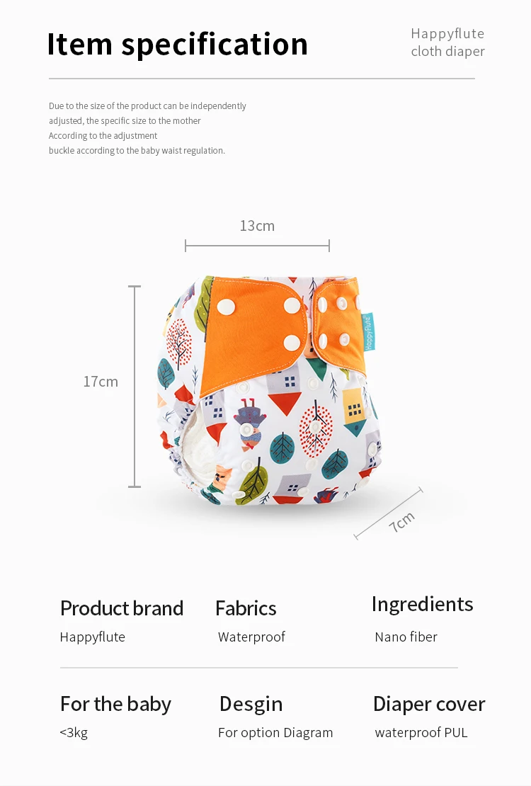 Tamaño apto para bebés de 3-15kg Material: Capa exterior: PUL estampado impermeable Interior: Tela de gamuza Bolsillo de secado rápido: Una Apertura trasera Instrucciones de cuidado: lave los pañales de tela por separado de otros pañales ¿Cuántos pañales necesita? -Recién nacido a 4 meses -- 20 ~ 30 pañales-Infante (4 a 10 meses) -- 20 ~ 25 pañales-Niño (más de 10 meses) -- 15 ~ 20 pañales