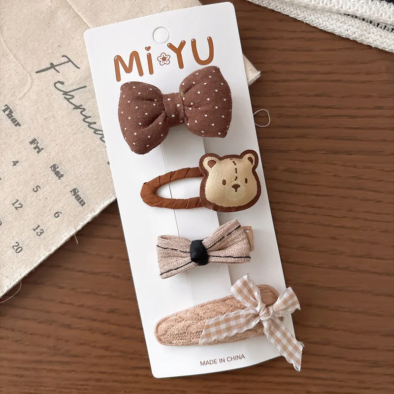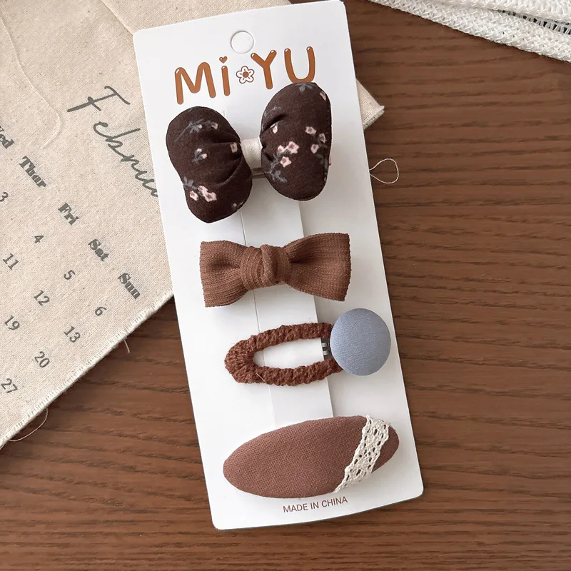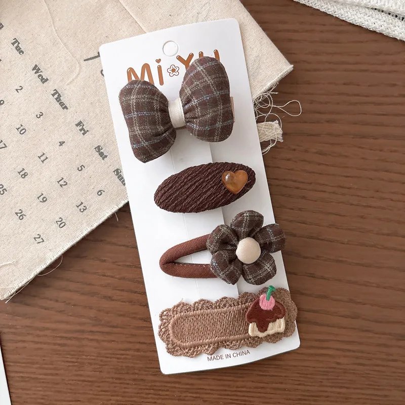 4 unids/set de pinzas para el pelo para niños de Color café con leche, Clips a presión de flores de tela con lazo, pasadores laterales totalmente cubiertos seguros para bebés para niñas