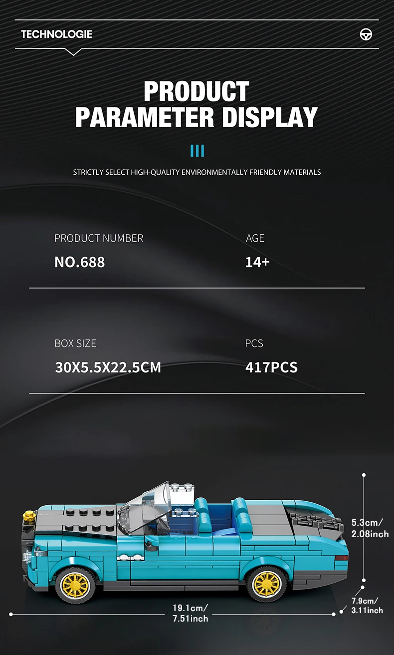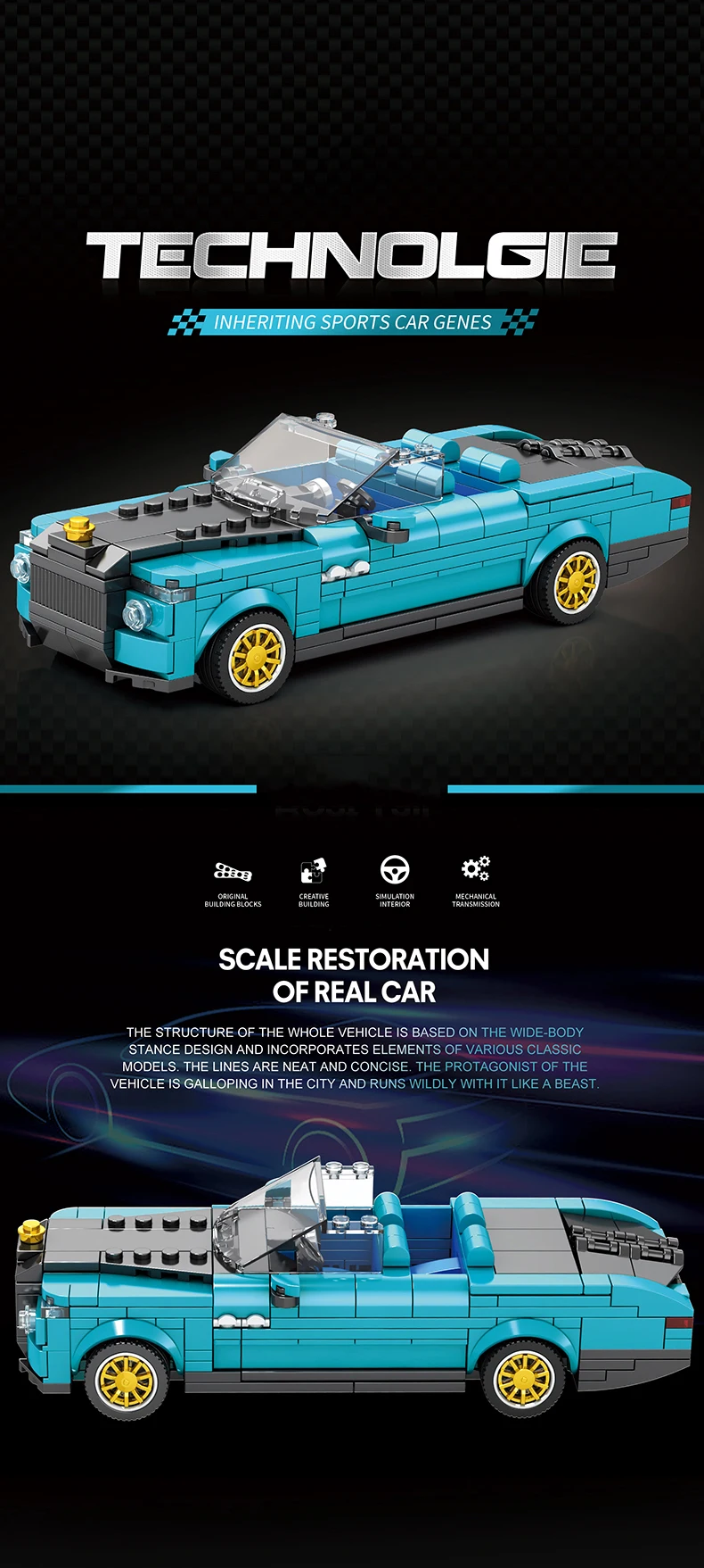 Comprar 417 Uds. Modelo de coches de lujo Retro, bloques de construcción, escala 1:24, vehículo Convertible de ciudad, modelo de coche, ladrillos, juguetes DIY para niños, Idea de regalos