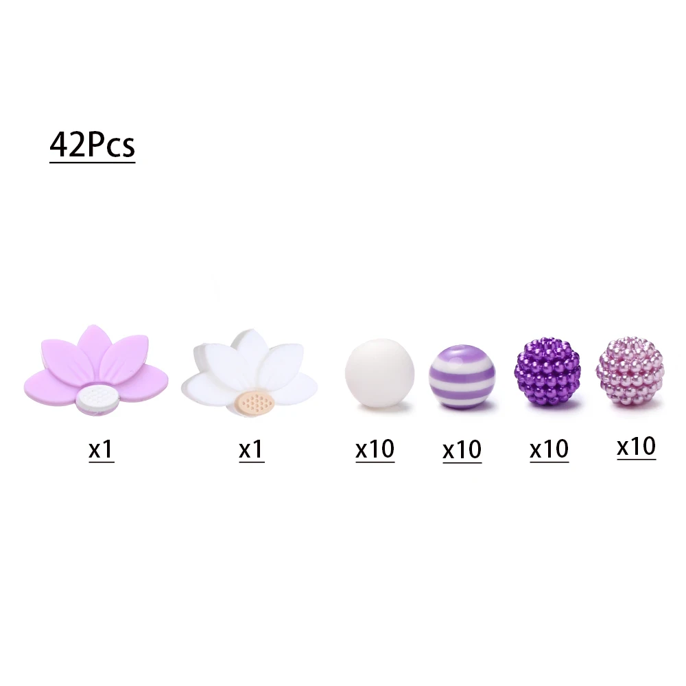 42 Uds. Cadena de chupete con flores y cuentas redondas de silicona, cuentas de dentición sin BPA, Clip simulado y accesorios para collar DIY