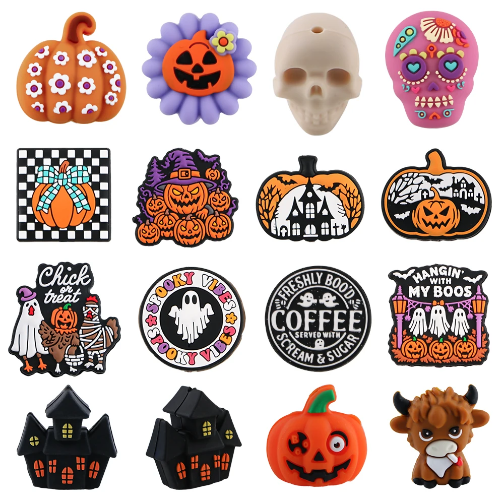 5/10 Uds nuevas cuentas focales de silicona de calabaza/calavera de Halloween para joyería DIY collar pulsera pendiente llavero colgante Accesorios