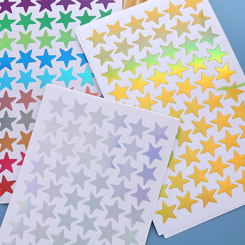 5 hojas de pegatinas de estrellas brillantes para niños, pegatina de recompensa para profesores de escuela, regalos bonitos, decoración de fiesta, etiqueta de negocios, pegatina para álbum de recortes