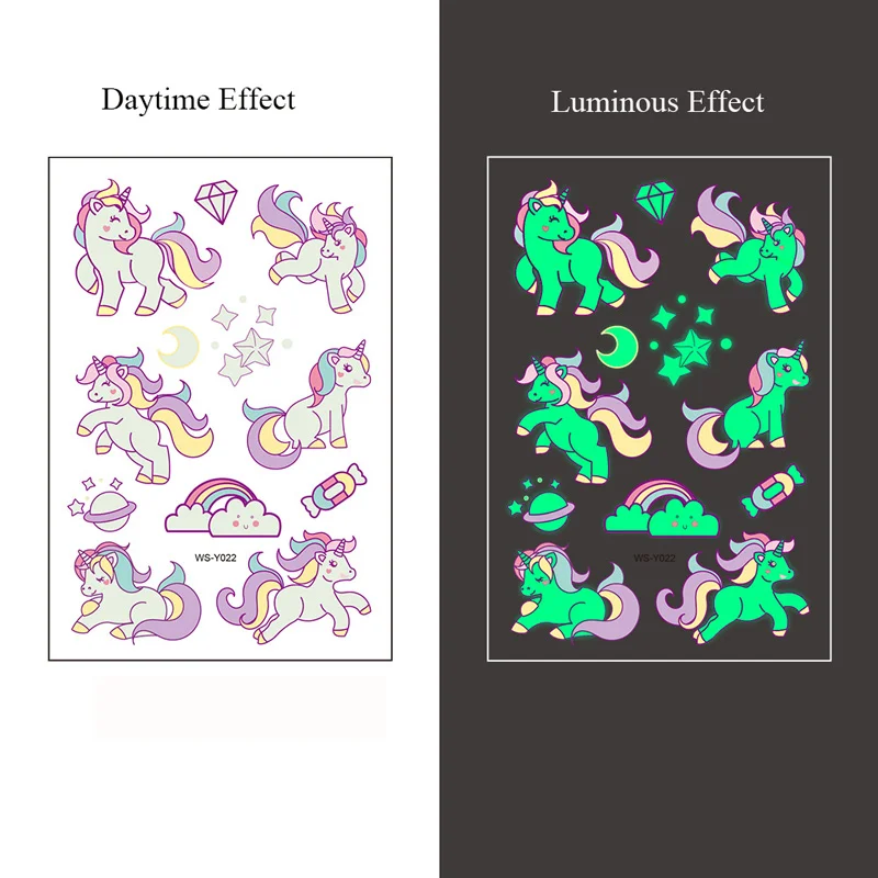 Comprar 5 hojas de pegatinas de tatuaje luminosas, tatuaje temporal colorido de dinosaurio Animal, pegatinas de tatuaje bonitas, tatuaje corporal para niños